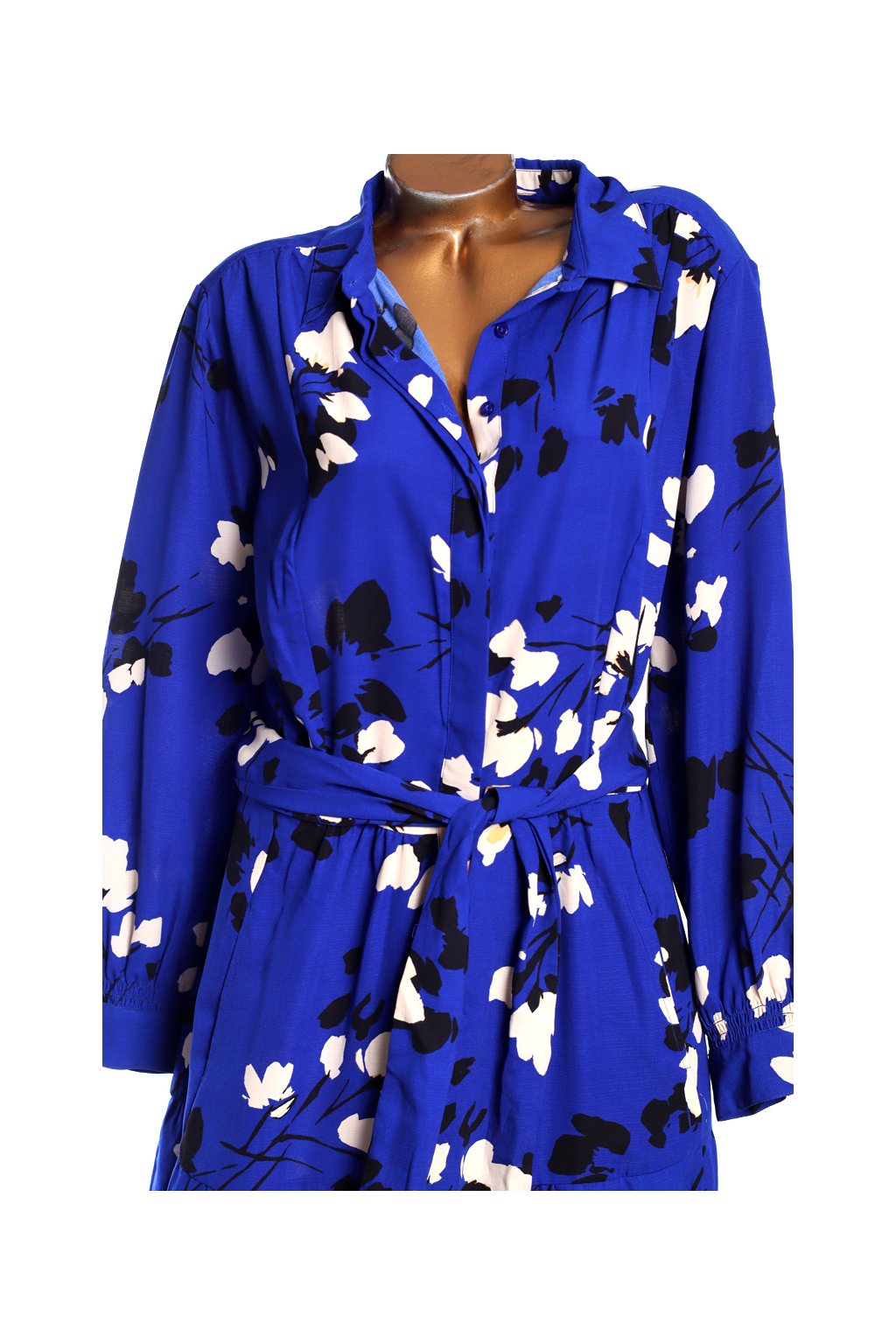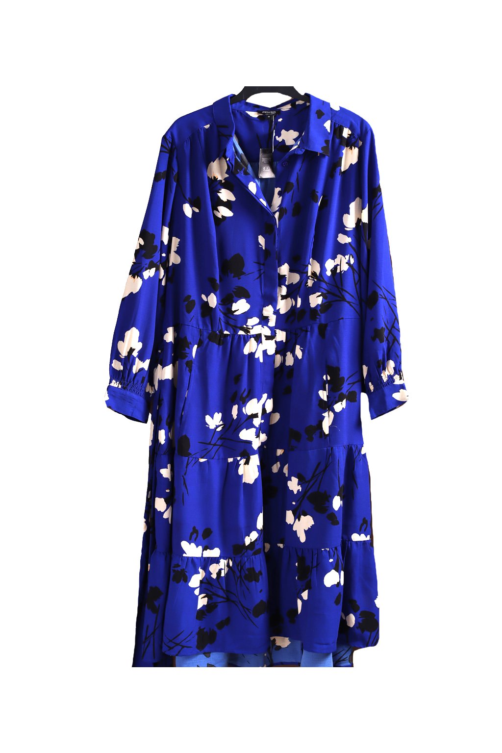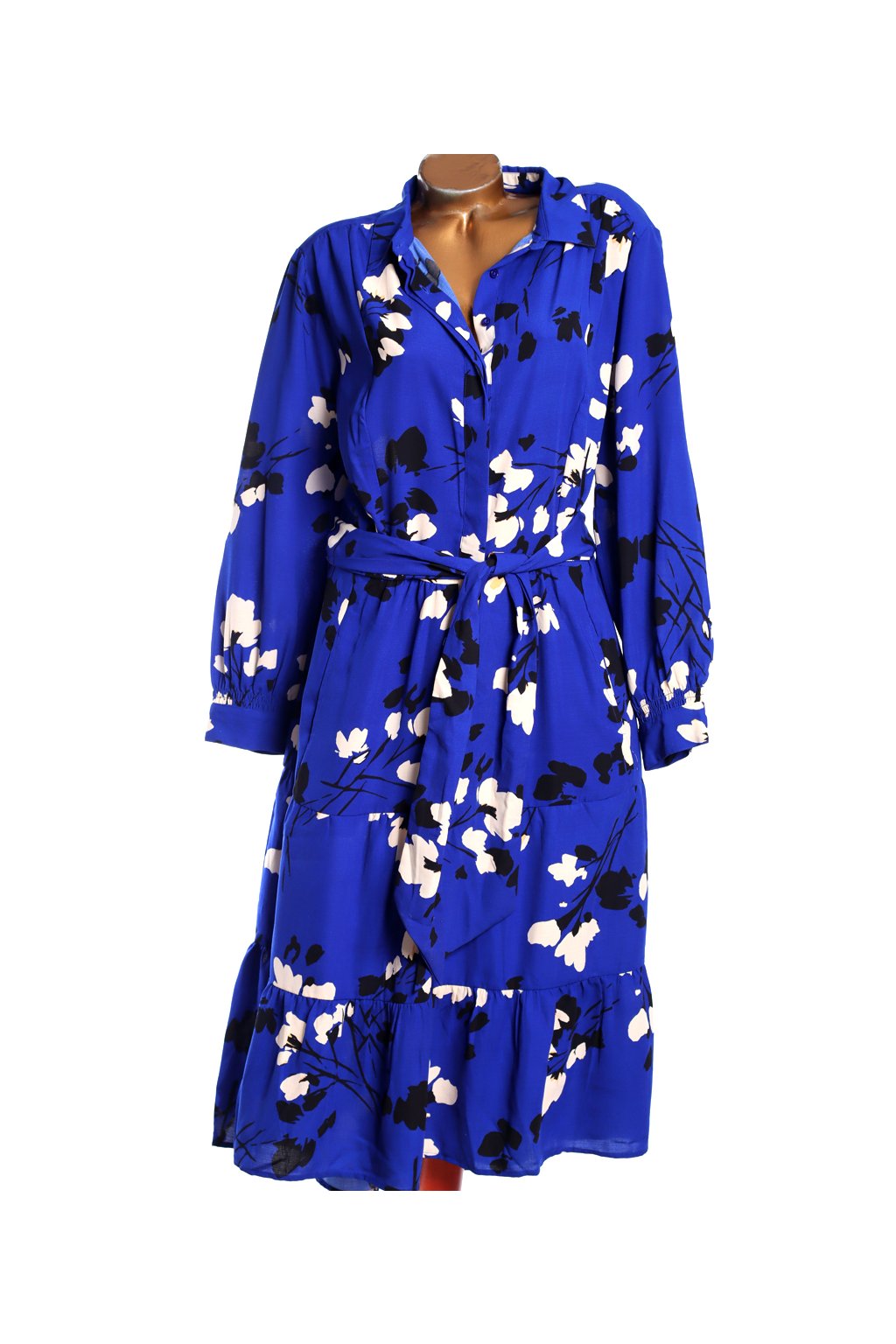 Dámské kvalitní královsky modré šaty s bílo-černými květy / jd williams / XXXXL (54) / UK 26 / ANGLIE