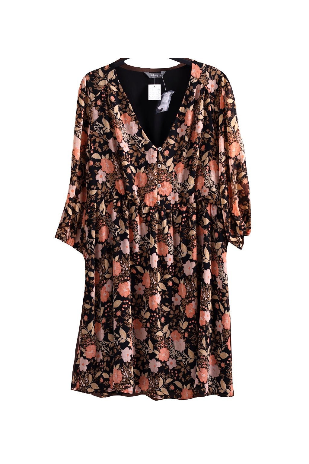 Dámské dvouvrstvé, černé šaty s oranžovo-béžovým vzorem květin a knoflíky / Nutmeg / XXXL (50) / ANGLIE 22