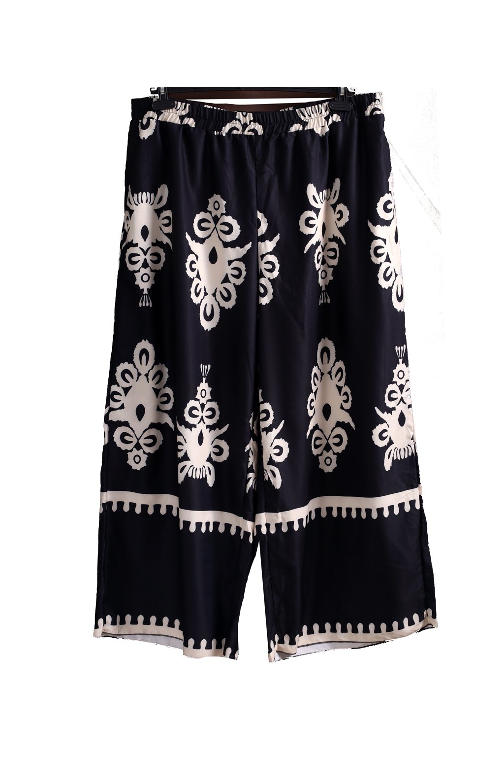 Dámské lehké elastické kalhoty černé s bílými vzory / BooHoo - XXXXL (50/52) / UK 22/24 ANGLIE