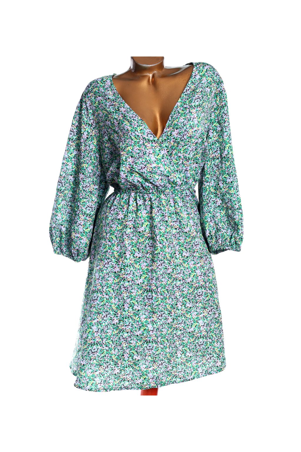 Dámské lehké zelená šaty s barevnými květy / curves / XXXL (52) / uk 24 ANGLIE