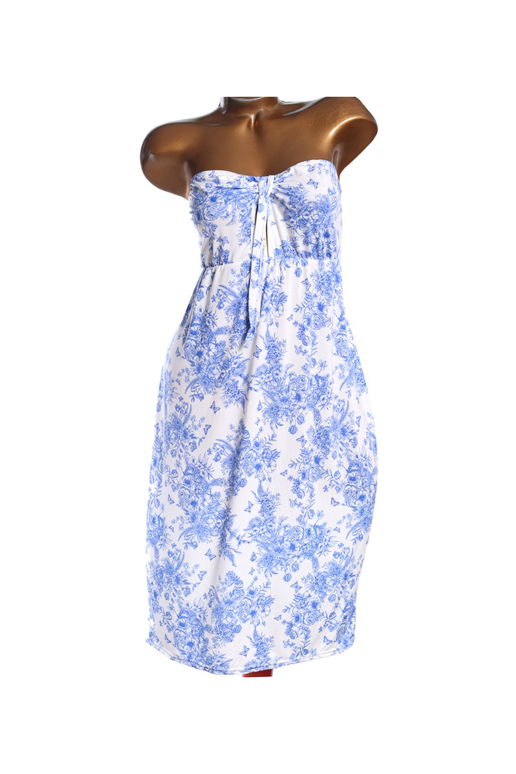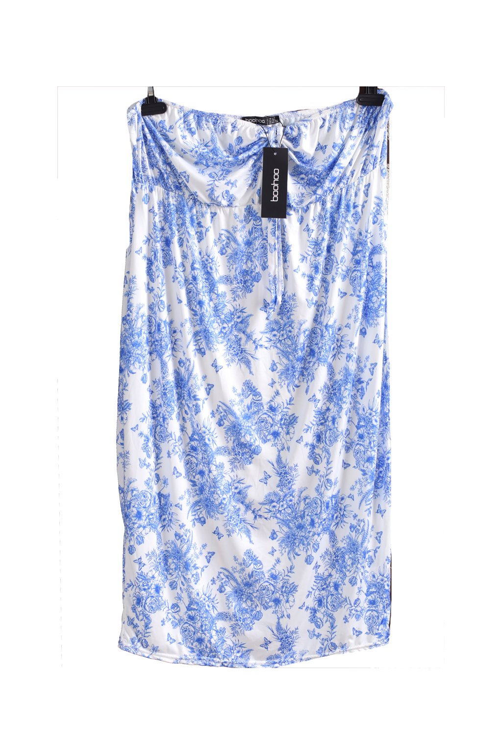 Dámské letní bílé šaty s modrými květy / BOOHOO / XXL (50/52) / UK 22/24/ ANGLIE