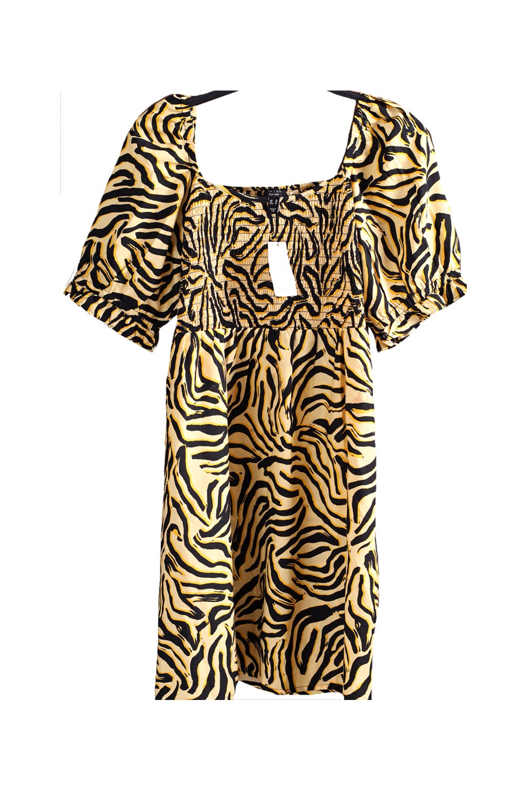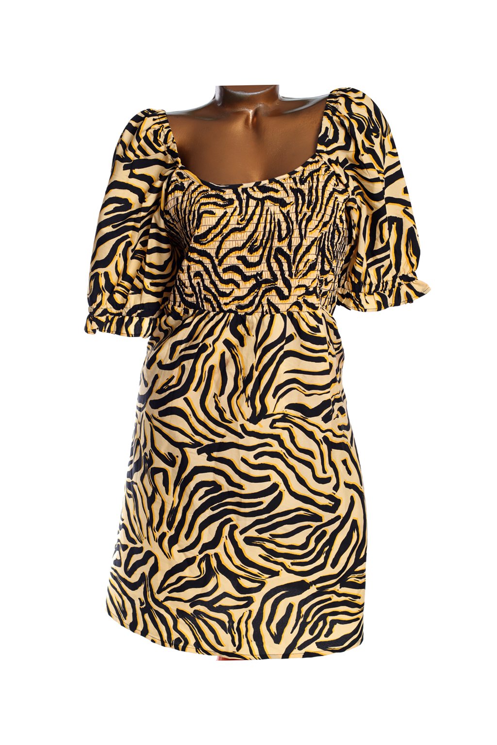 Dámské letní šaty žluto černé - na prsou elastické žabičkování / CURVES / XXXL (48) / UK 20 / ANGLIE
