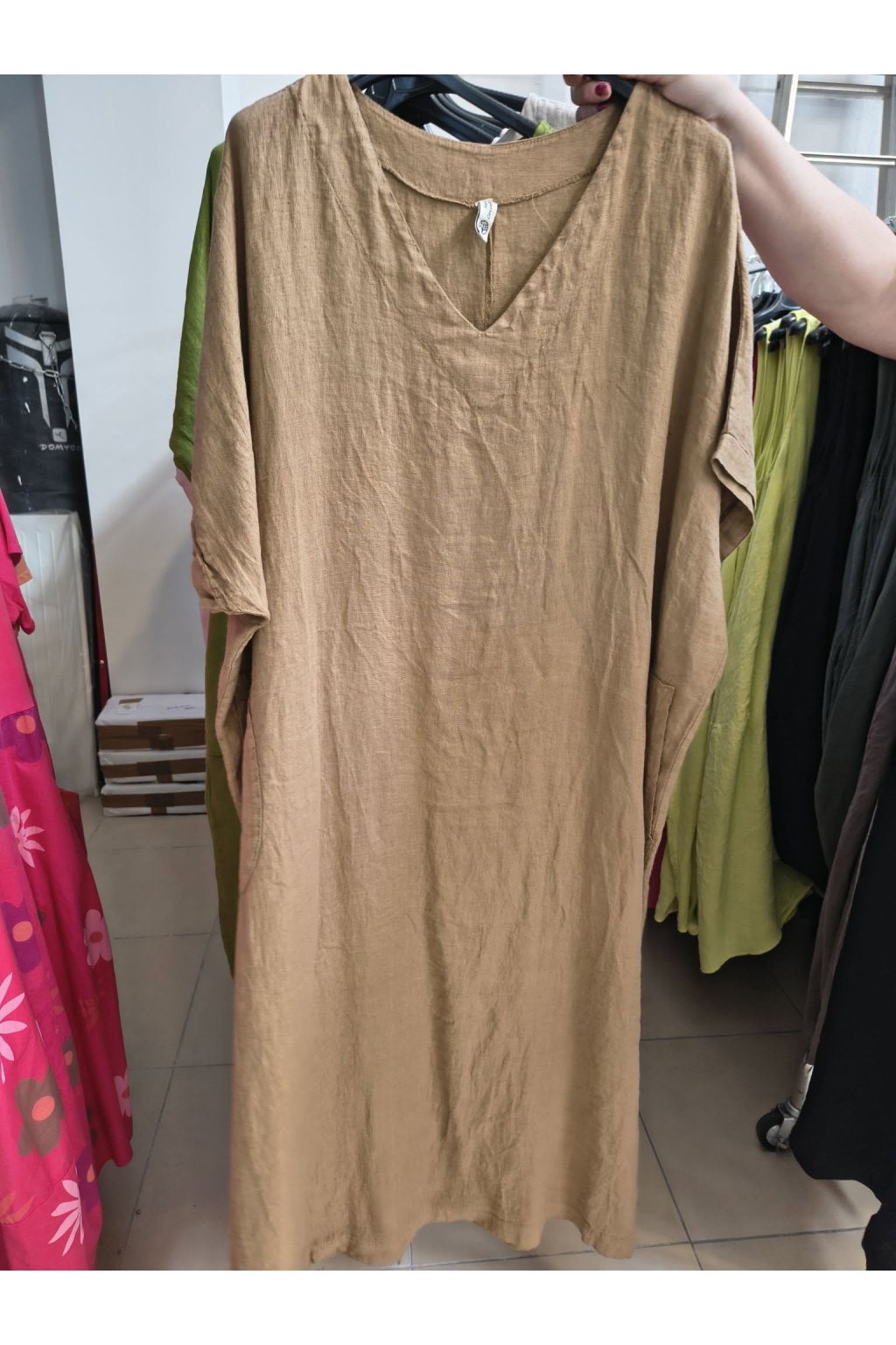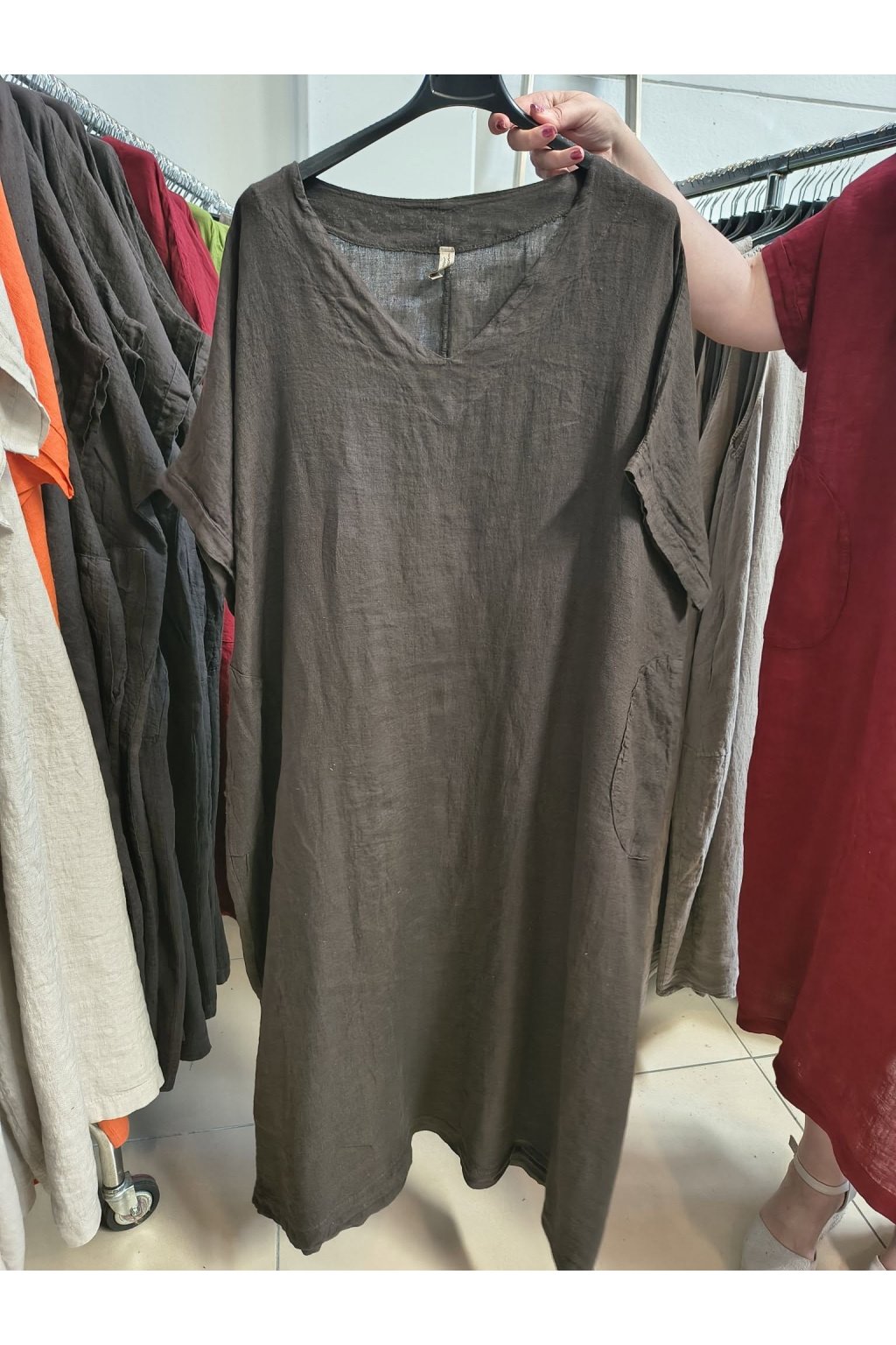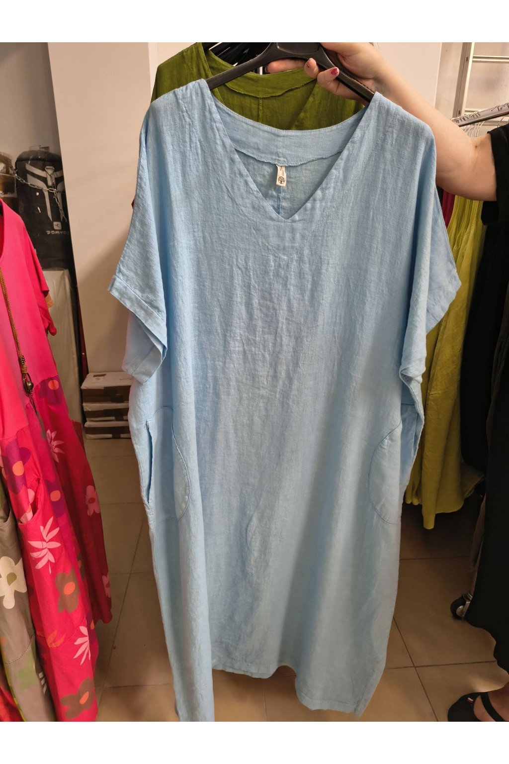 Dámské lněné šaty s kapsama - barvy na výběr - prsa do 150 cm, boky do 160 cm, délka 125 cm/ Itálie