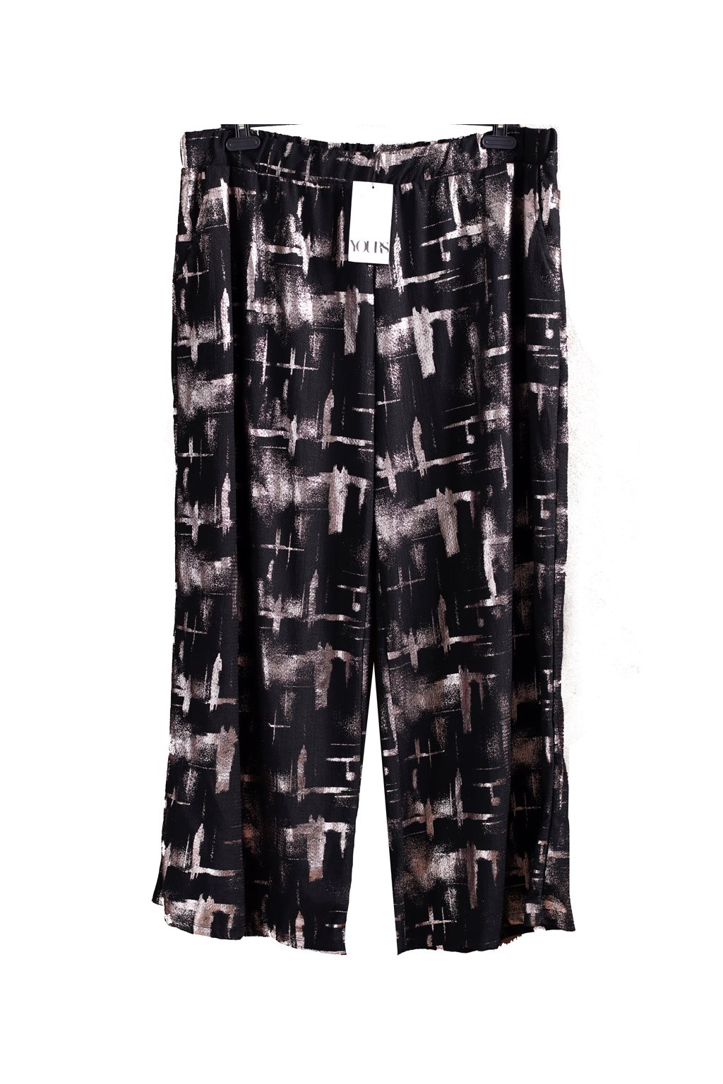 Dámské luxusní černé elastické kalhoty s metalickými vzory / YOURS / XXXXL (54/56/58) / UK 26/28/30 ANGLIE