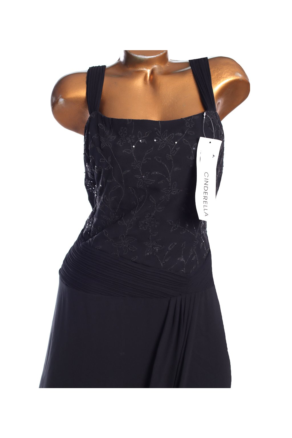 Dámské luxusní černé společenské šaty s flitrovými květy / CINDERELLA / XXXL (48/50) / UK 20/22 / ANGLIE