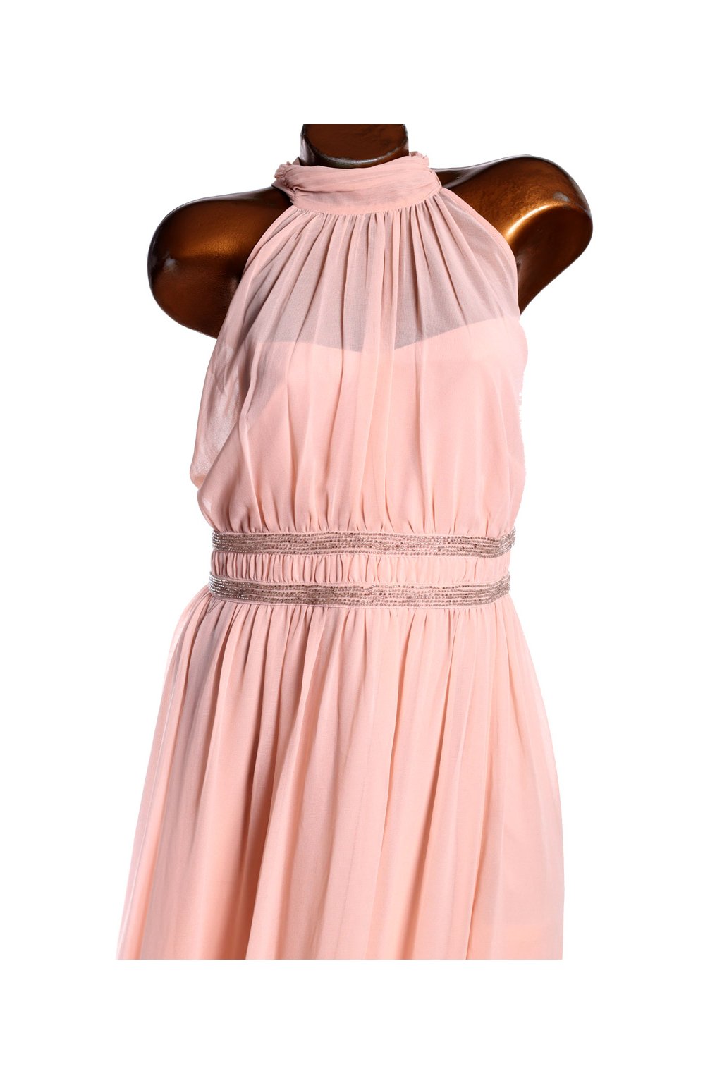 Dámské luxusní značkové růžové šifonové šaty s kamínky v pase / MONSOON / XXXXL (52) / UK 24 / ANGLIE