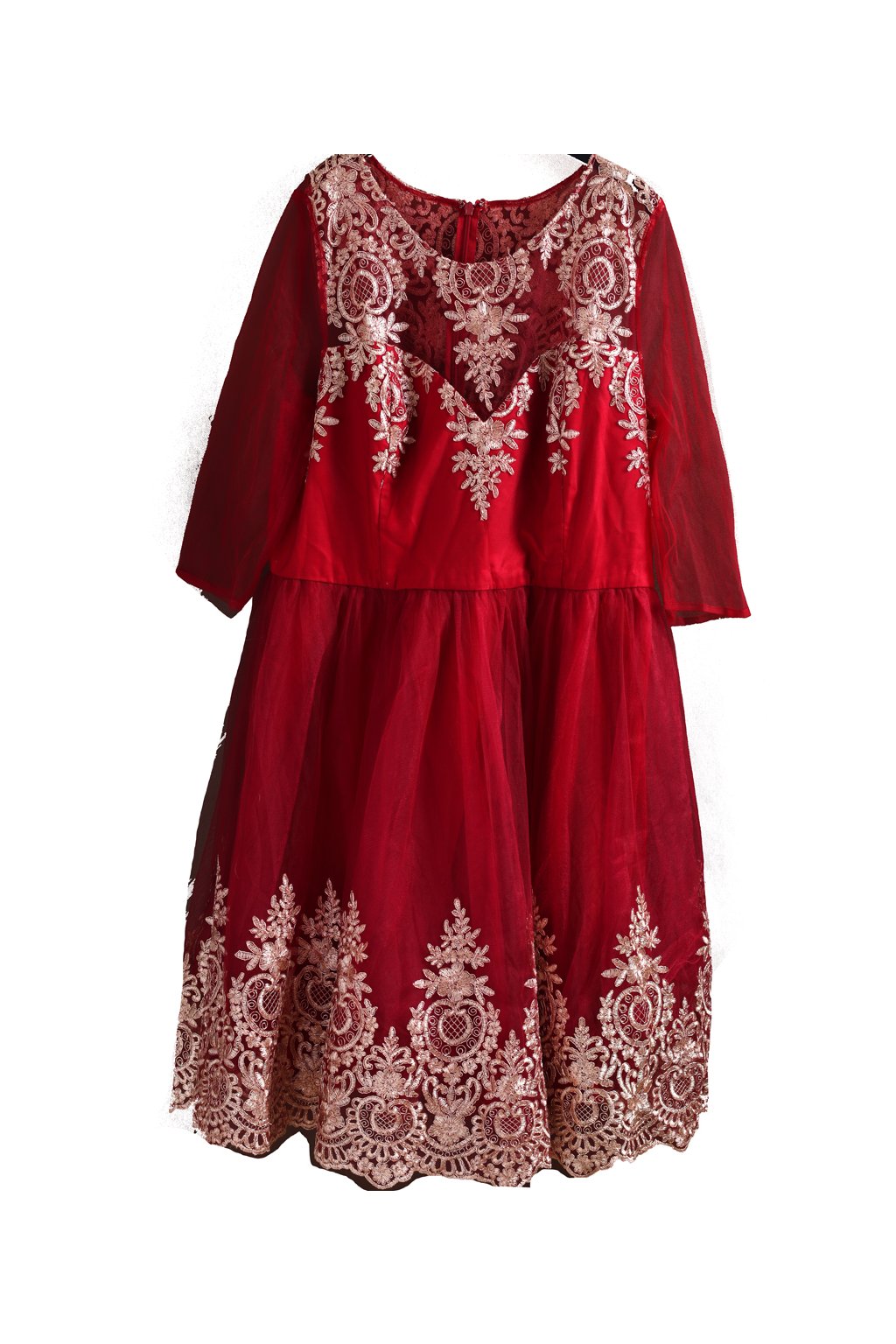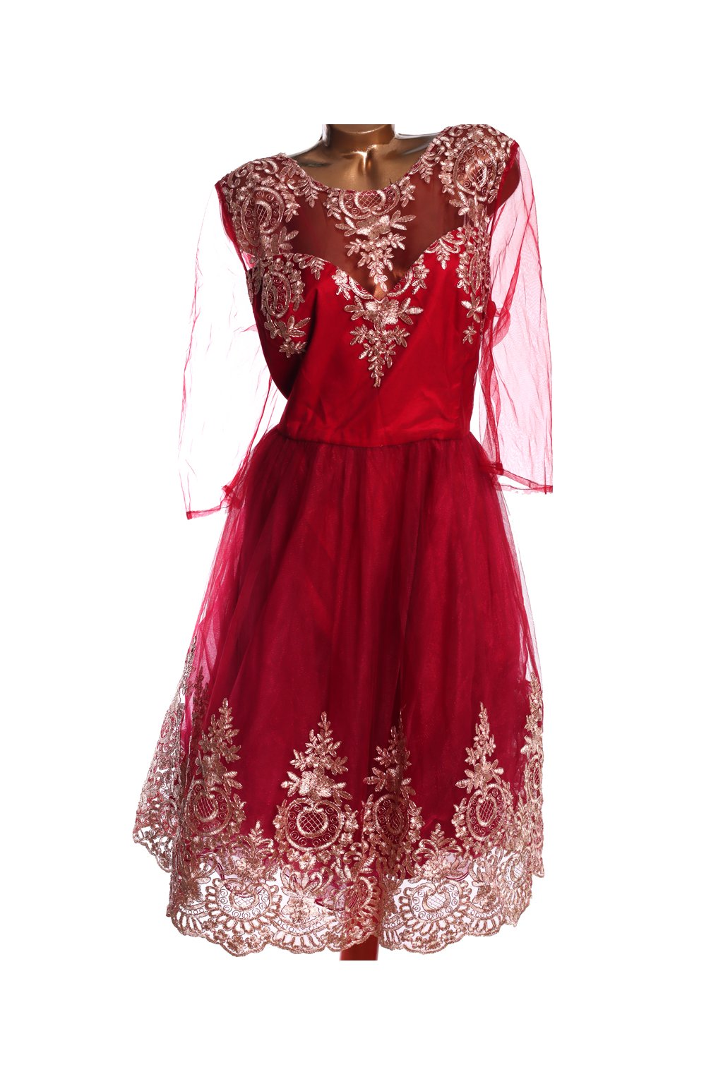 Dámské luxusní značkové vínové šaty s béžovou krajkou / Chi Chi / XXXXL (52) / UK 24 / ANGLIE