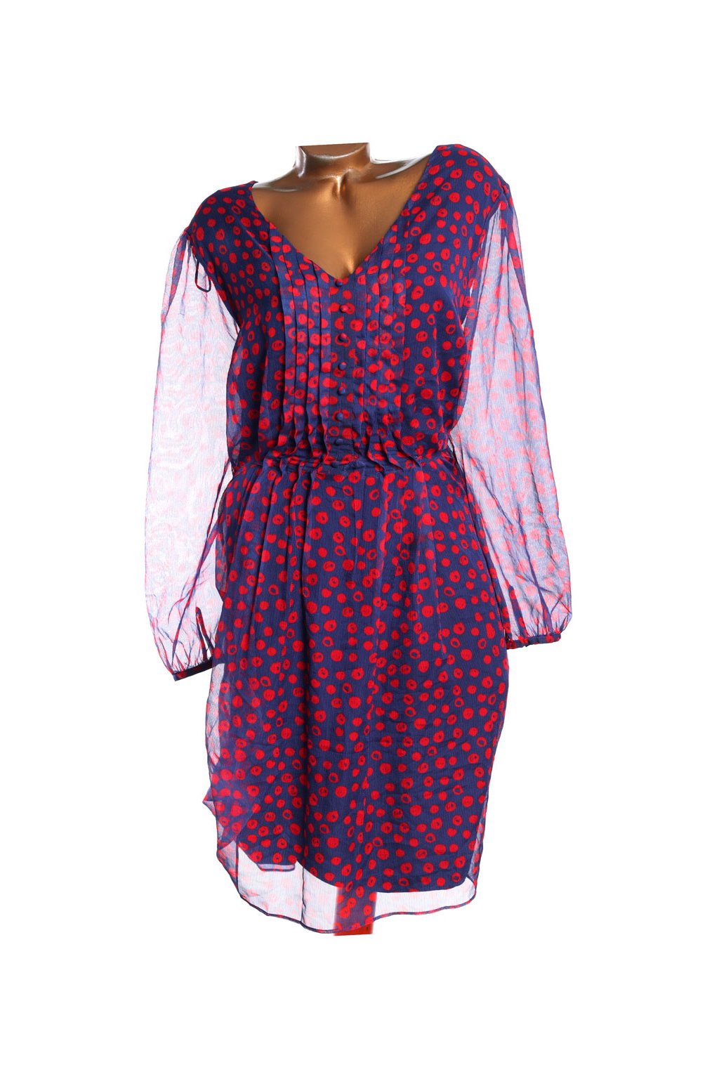 Dámské značkové modré šaty s červenými puntíky / STUIDO 8 / XXXL (48/50) / ANGLIE (22)