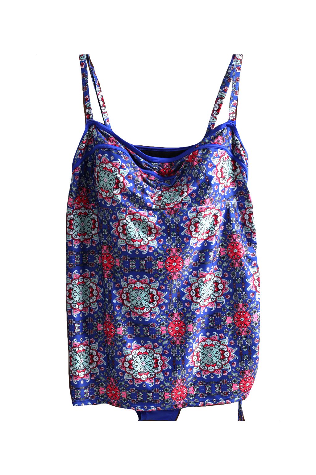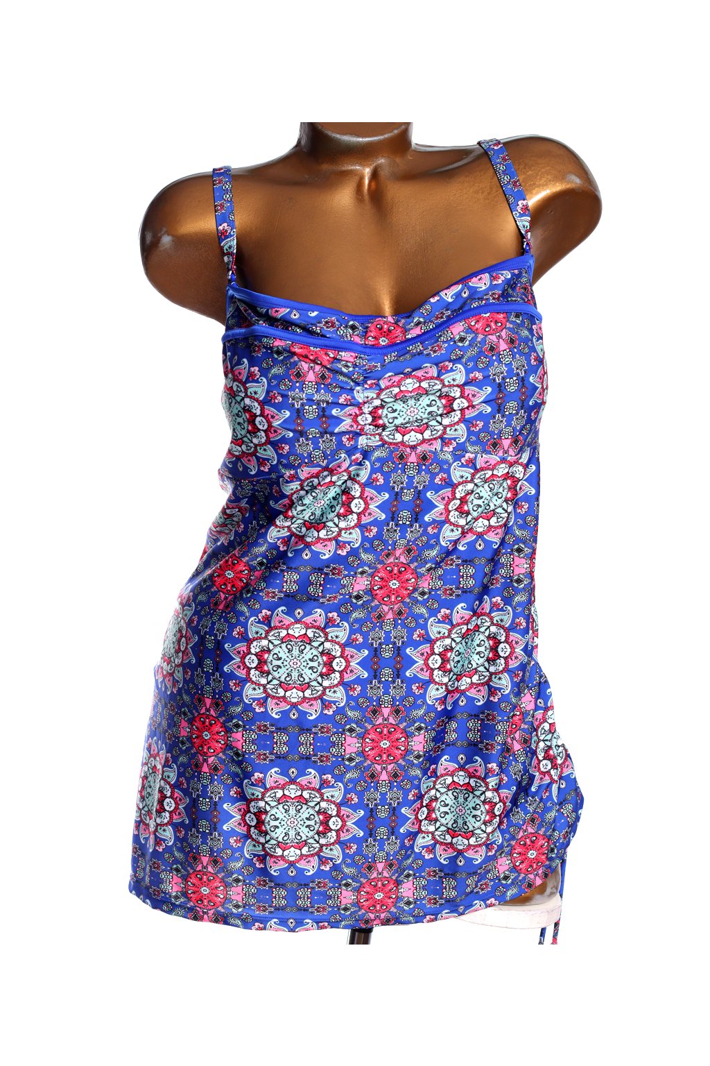 Dámské sukňové modré barevně vzorované jednodílné plavky / Yours / XXXXL (52) / UK 24 / ANGLIE