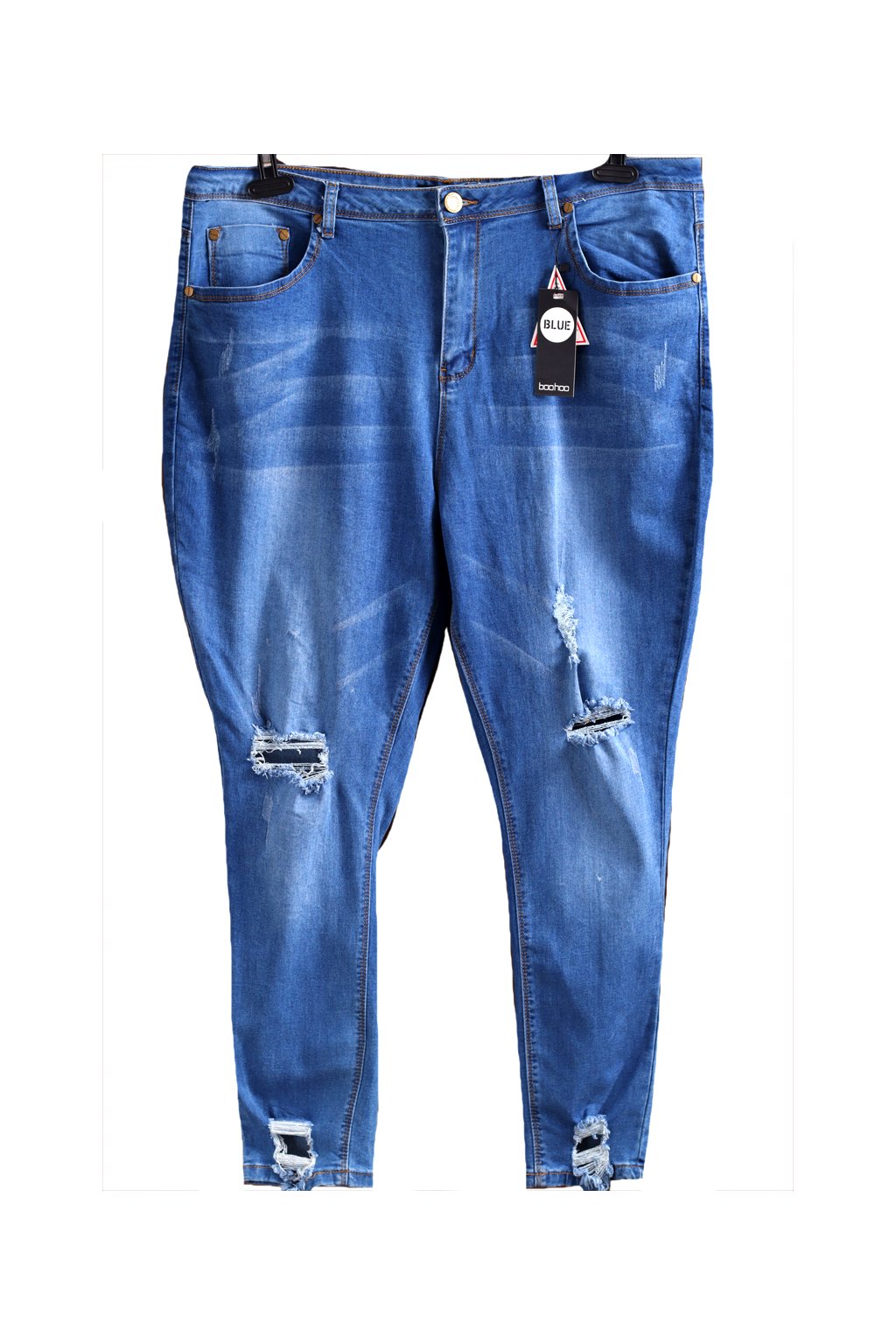 Dámské modré džíny s dírkami / BOOHOO / XXXL (50) / UK 22 / ANGLIE