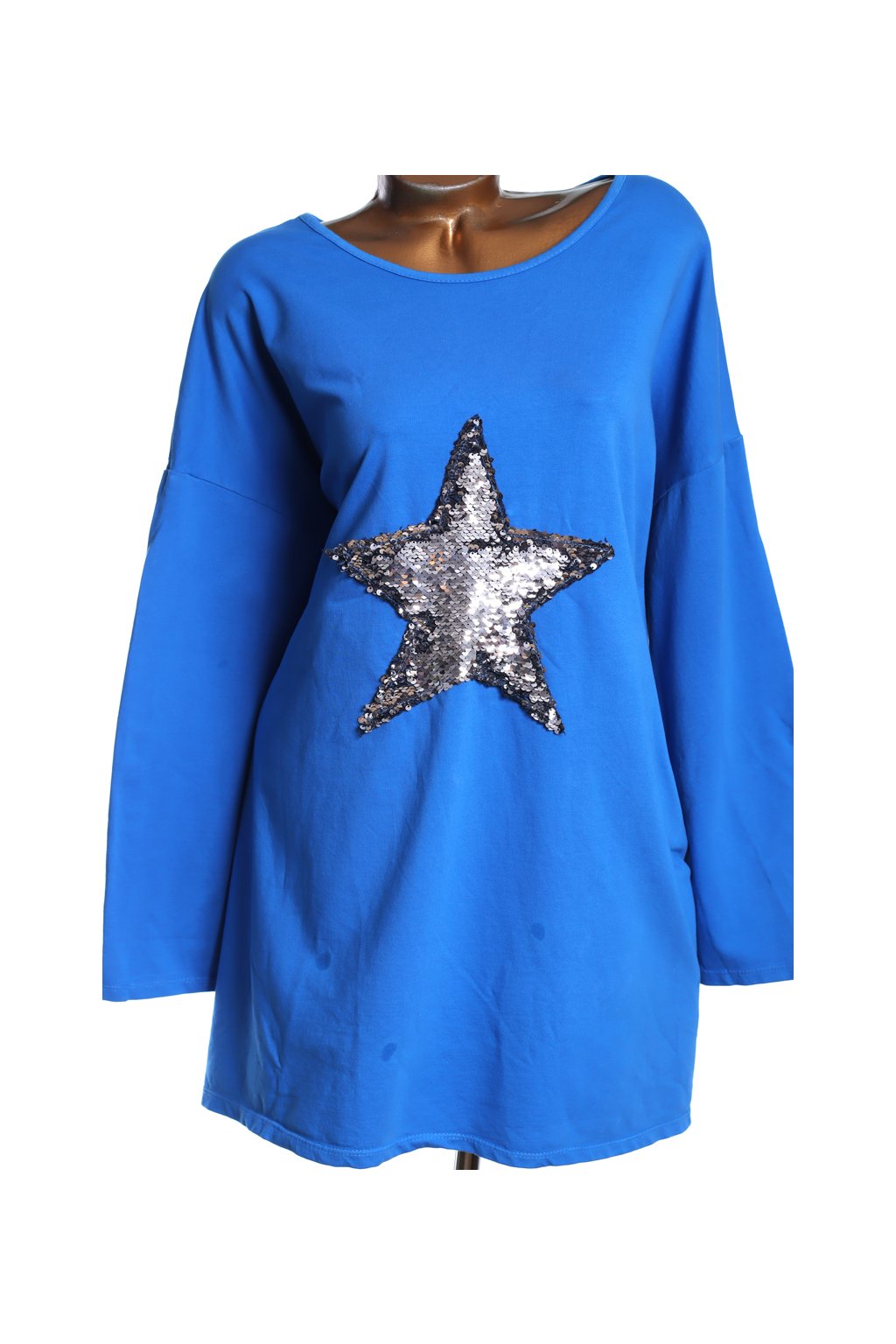 Dámské modré elastické šaty s aplikací/ XXXL (60) / UK 30 ANGLIE