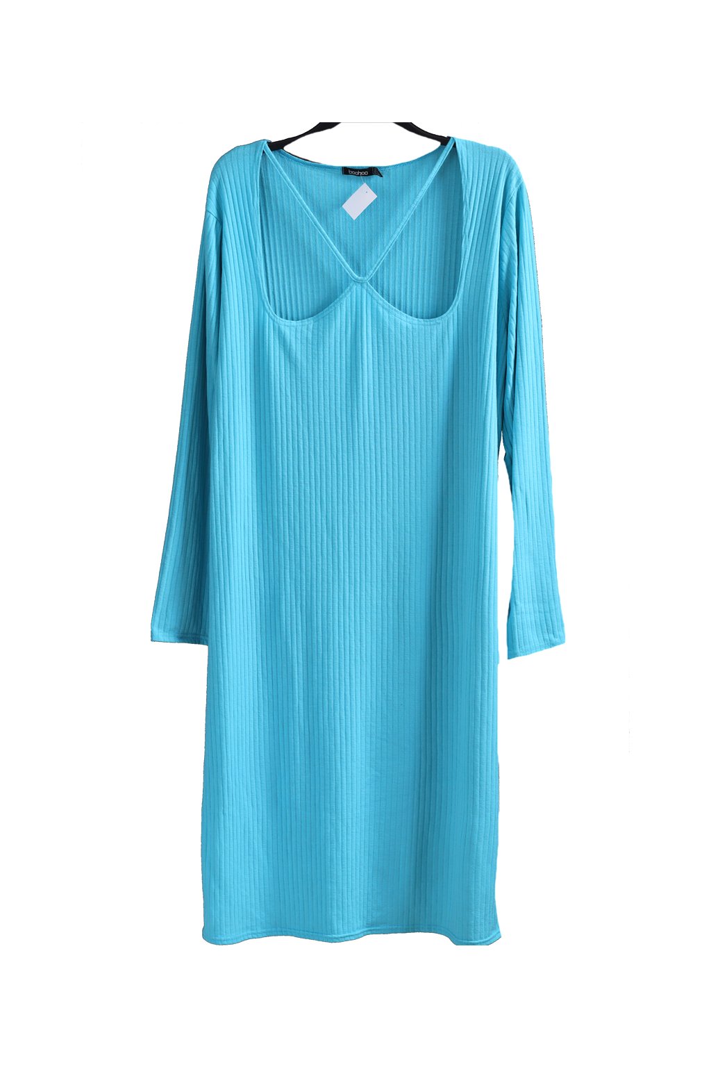 Dámské modré lehké elastické úpletové šaty / BooHoo / XXXXL+ (54/56) / na štítku UK 28/ ANGLIE