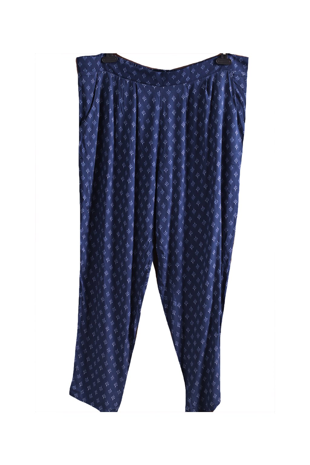 Dámské modré lehké kalhoty s bílými vzory / BONMARCHÉE / XXXXL (52) / UK 24 / ANGLIE