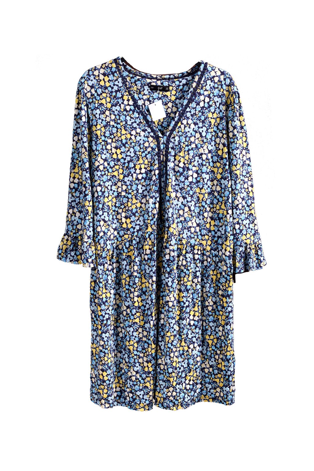 Dámské modré šaty s bílo-žluto-modrými květy / F&F/ XXXXL (50) / UK 22 / ANGLIE