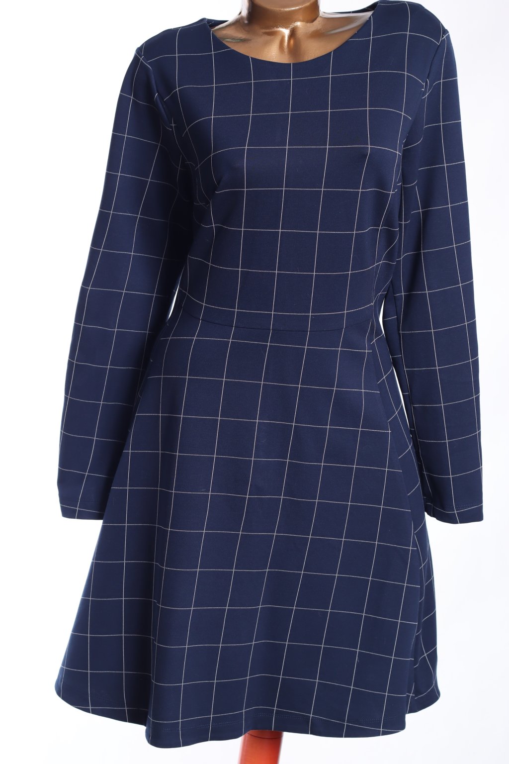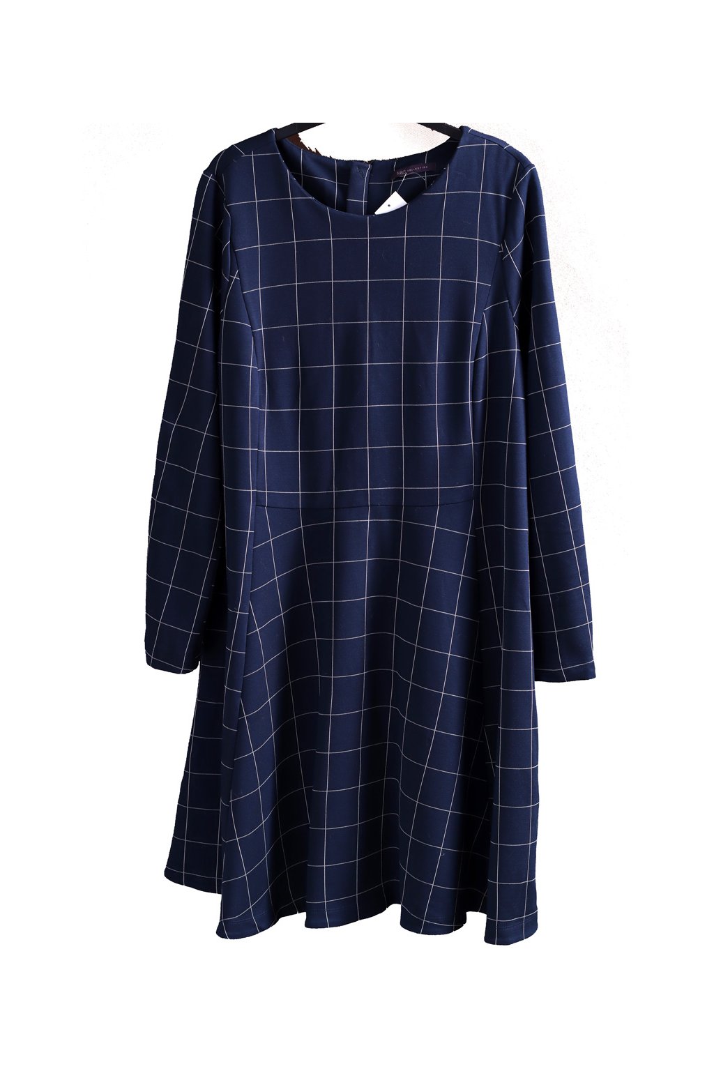 Dámské kvalitní zimní/podzimní modré šaty s bílým kostkováním / Marks & Spencer / XXXL (50) / UK 20/22 / ANGLIE