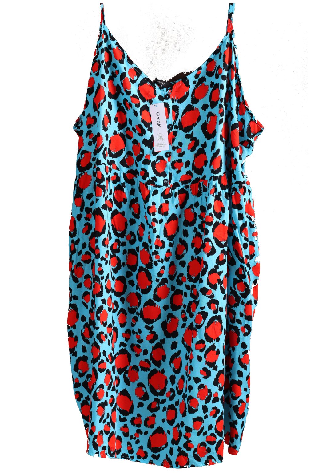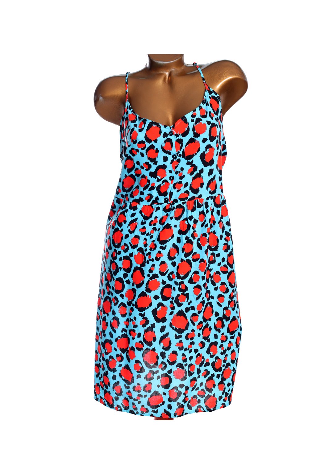 Dámské modré šaty s oranžovým leopardím vzorem / XXXXL (52) / UK 24 / ANGLIE