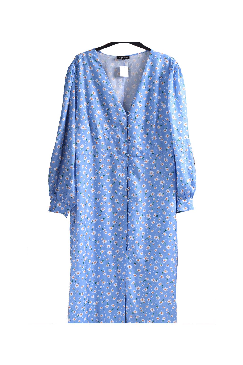 Dámské modré šaty s kopretinami / In the style / XXXXL (52) / UK 24 / ANGLIE
