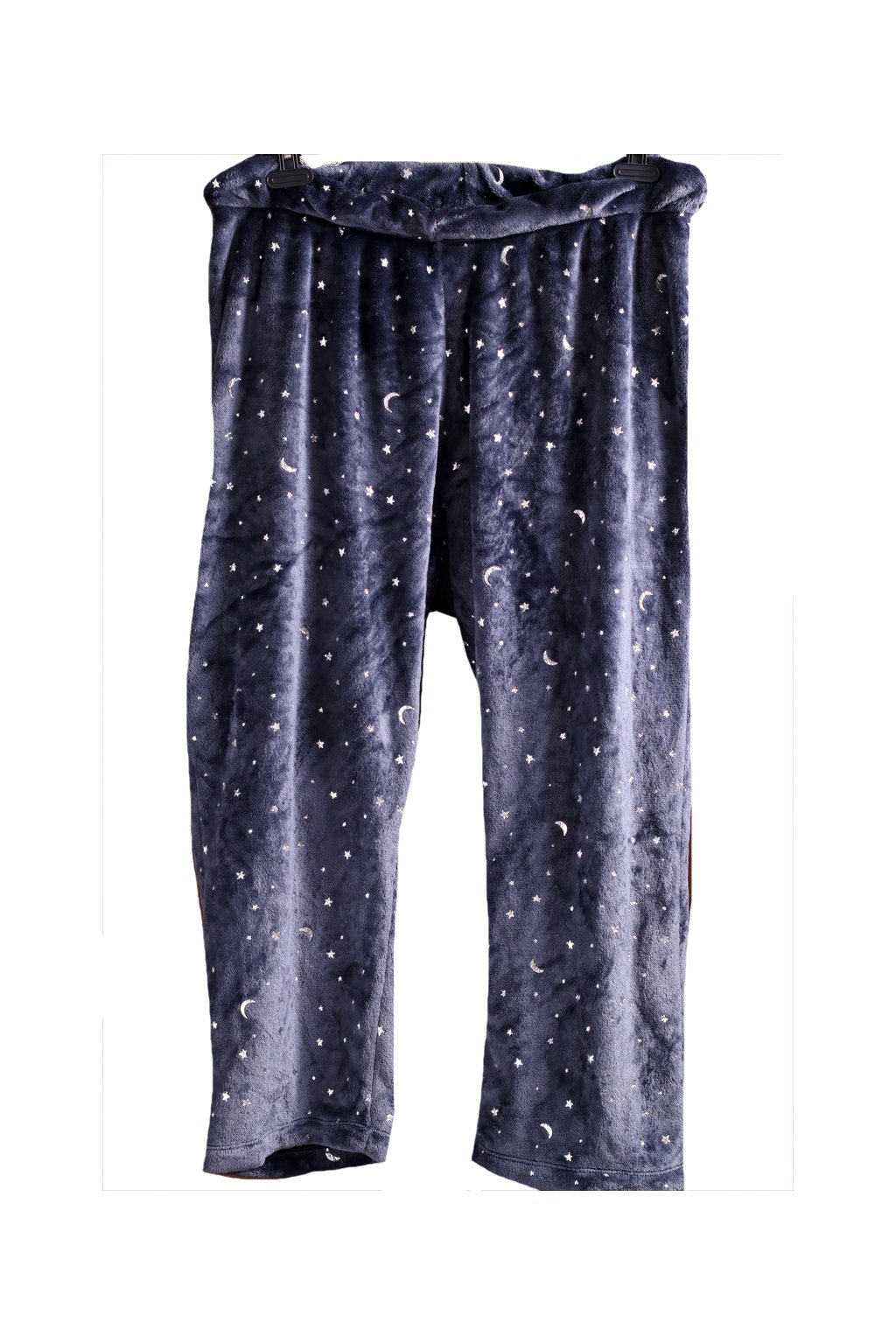 Dámské modré teplé domácí kalhoty s hvězdami a měsícem / F&F / XXXL (48/50) / UK 20-22 / ANGLIE