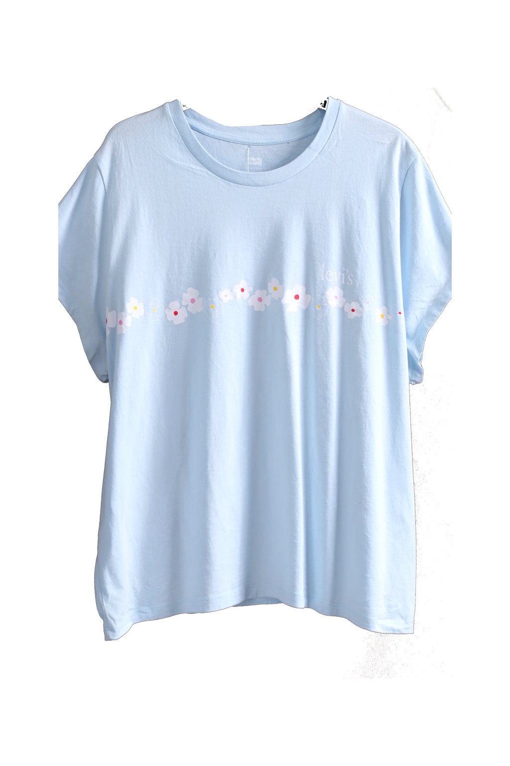 Dámské modré triko s bílými květy / LEVIS / XXXL (48/50) / UK 20/22 / ANGLIE