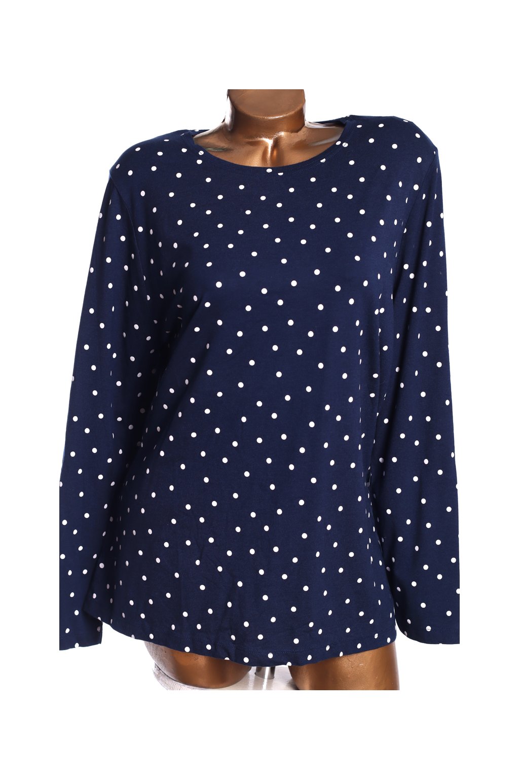 Dámské modré triko s puntíky a dlouhým rukávem / TU / XXXL (52)/ UK 24/ ANGLIE