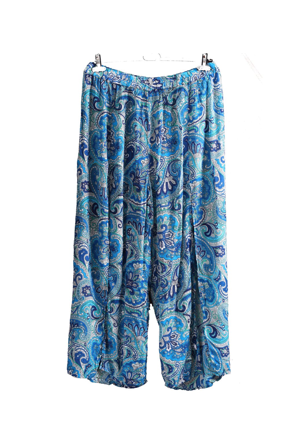 Dámské modré vzorované lehké kalhoty s rozparky / ASOS / XXXXL (54) / UK 26 / ANGLIE