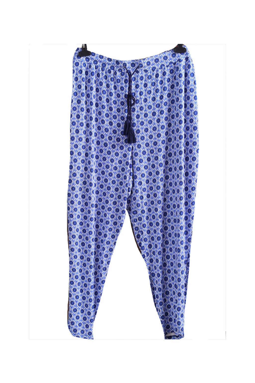 Dámské modro-bílé květované elastické teplákové kalhoty / V / (52) / UK 24 / ANGLIE