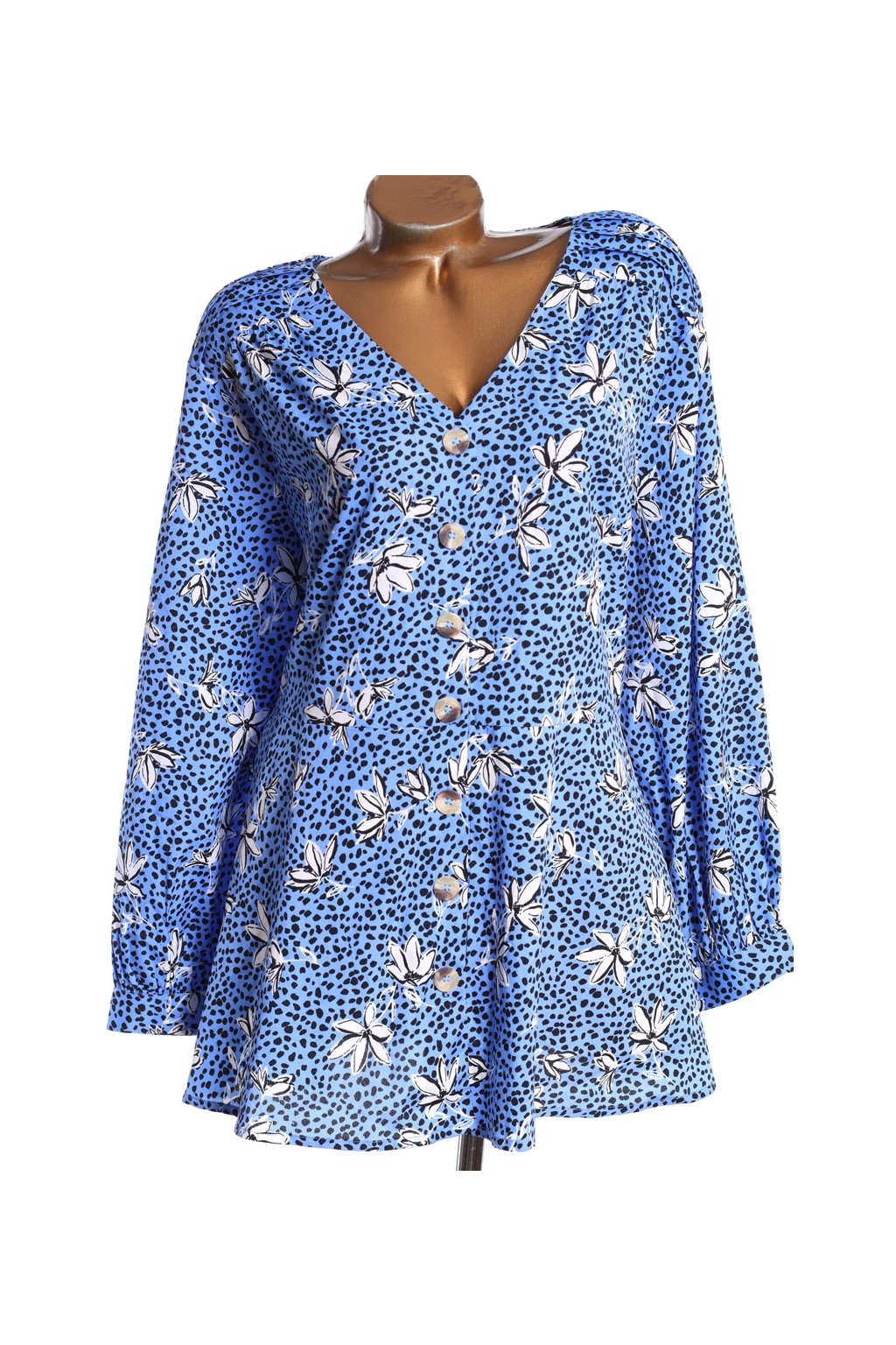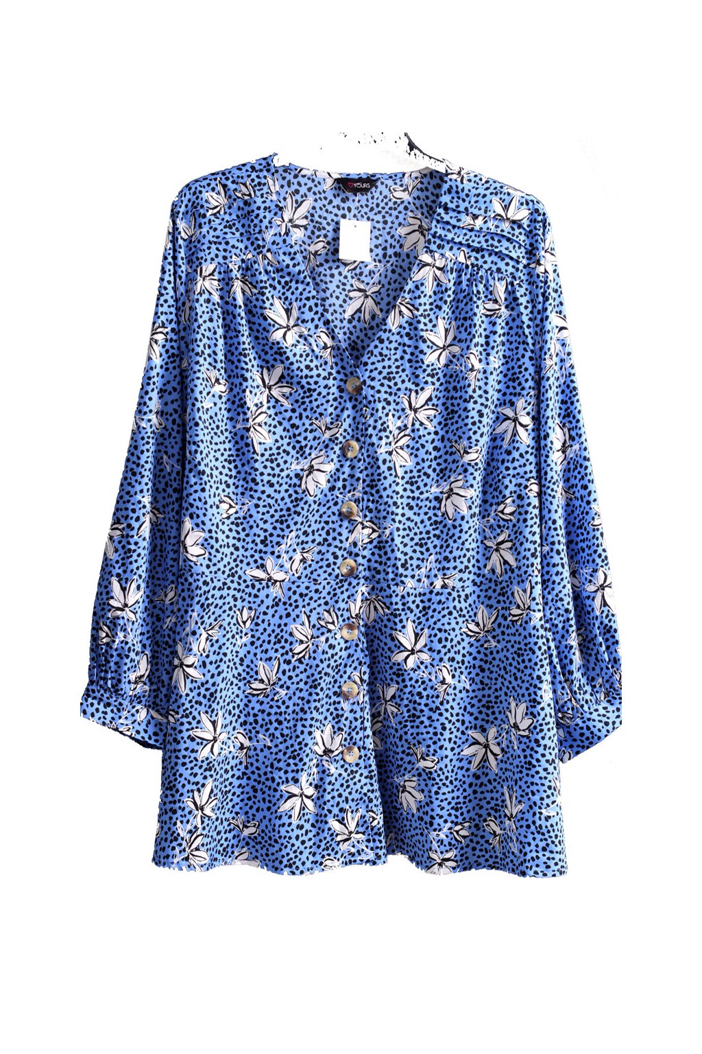 Dámské modro-černo-krémové květované šaty s puntíky a s knoflíky / YOURS / XXXXL+ (56) / UK 28 / ANGLIE