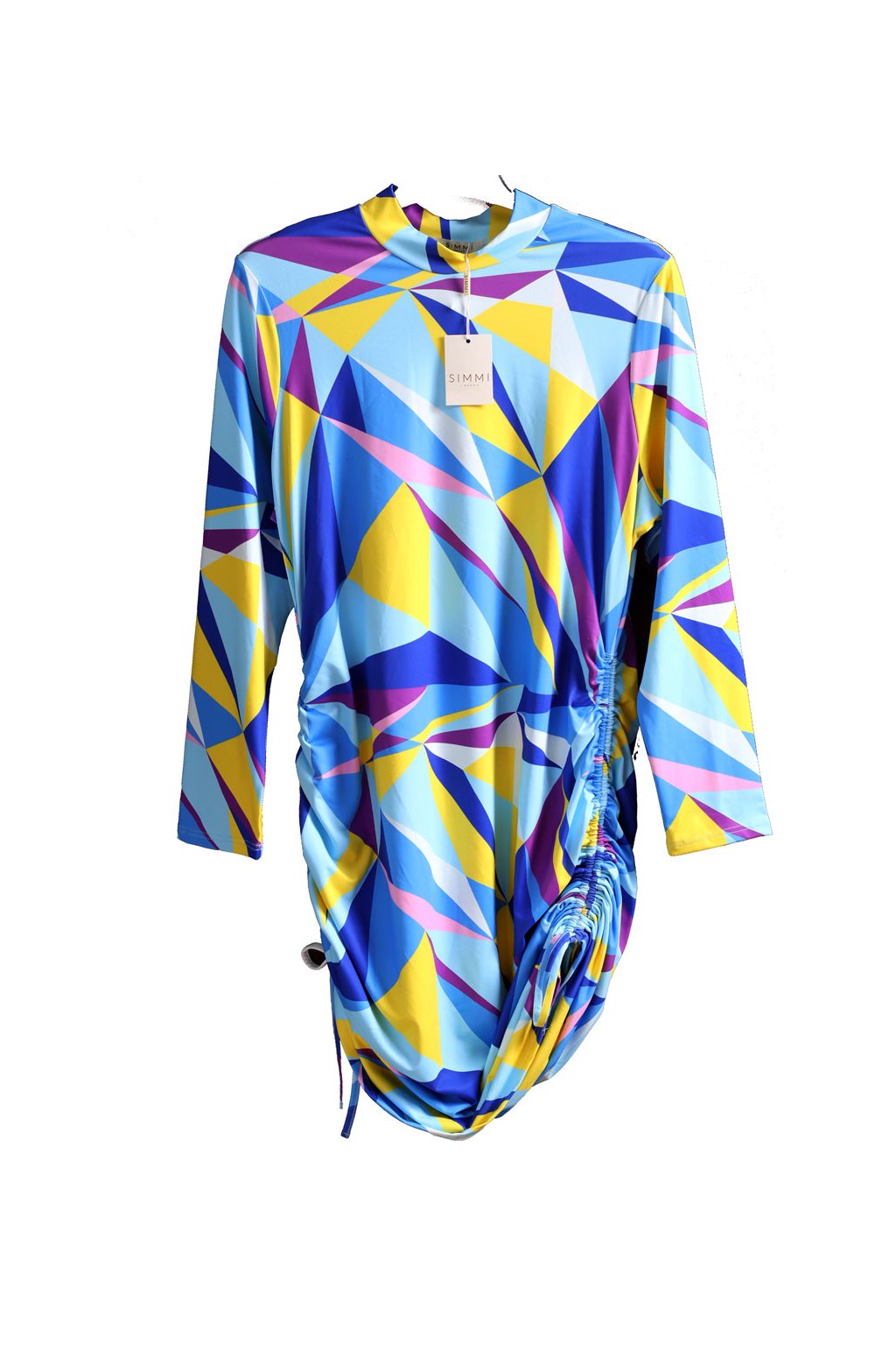 Dámské modro-fialovo-žluté vzorované plavecké šaty / SIMMI / XXXXL (52) / UK 24/ ANGLIE