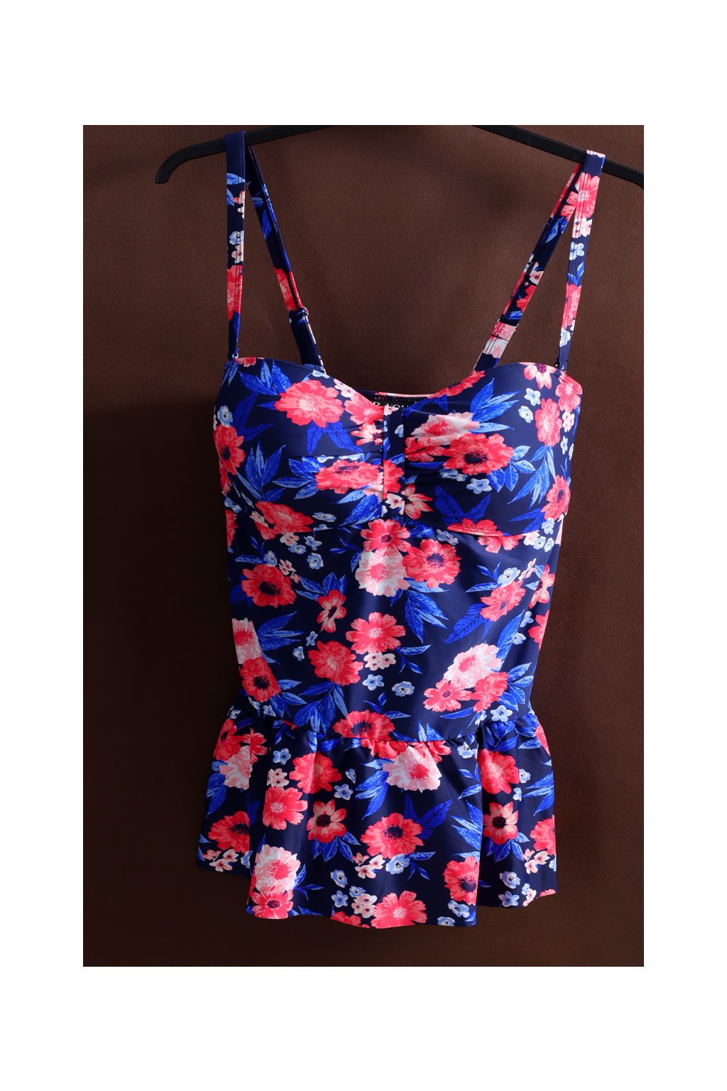 Dámské modro-růžové květované jednodílné šatové plavky / B.YOU / XXXXL (52) / UK 24 / ANGLIE
