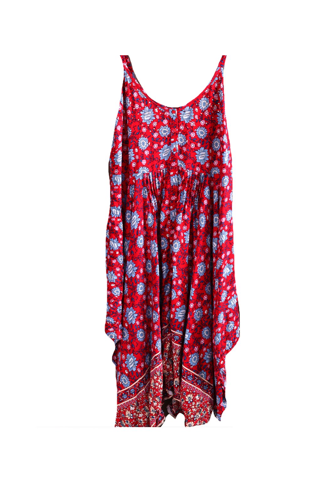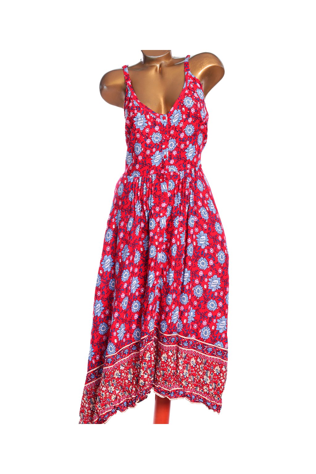 Dámské příjemné letní červené šaty s bílými/modrými květy /YOURS / XXXL (50/52) / UK 22 / ANGLIE