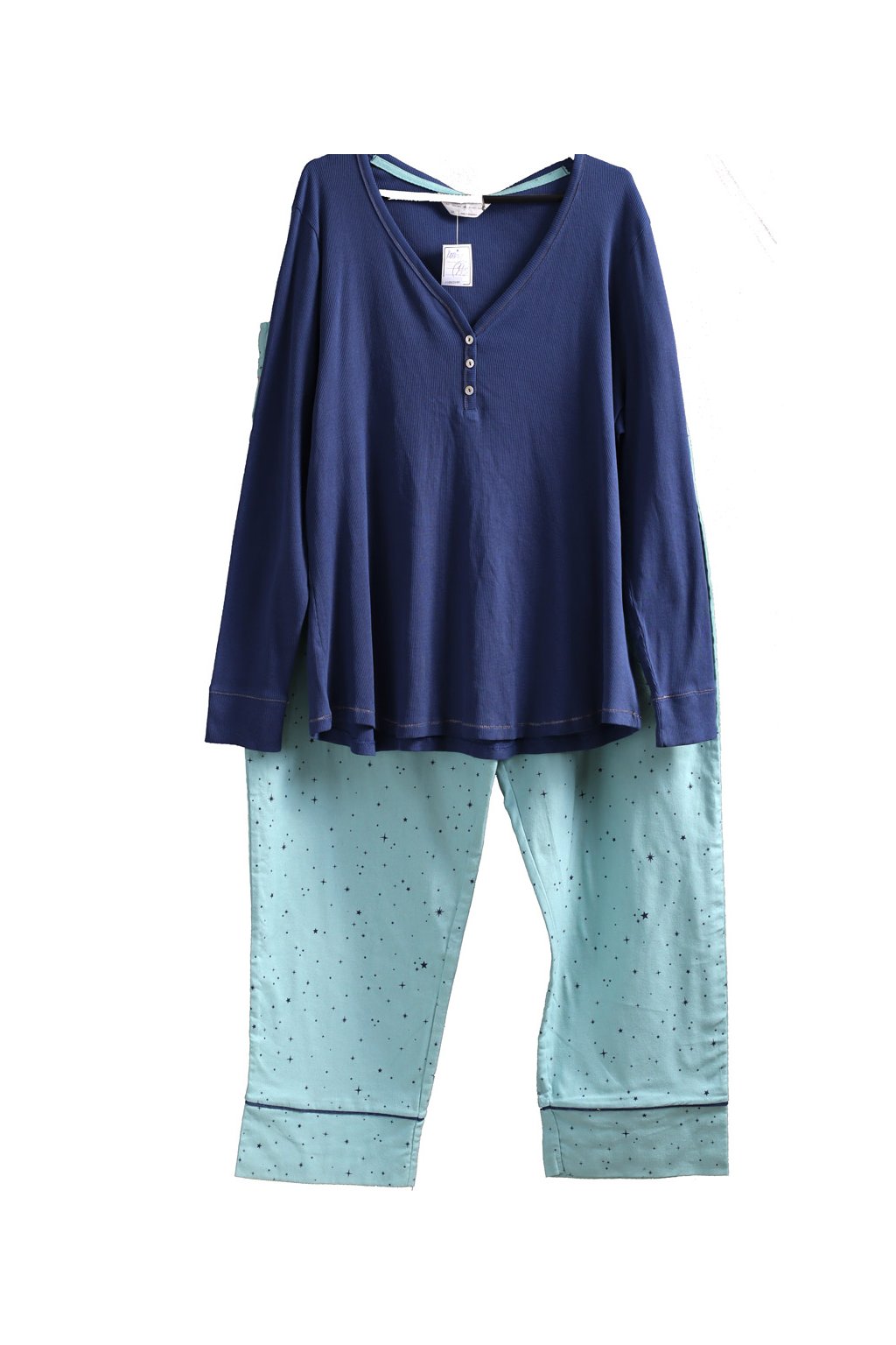 Dámské pyžamo - modré triko a kalhoty s hvězdičkami / M&S / XXXL (50) / UK 22 / ANGLIE
