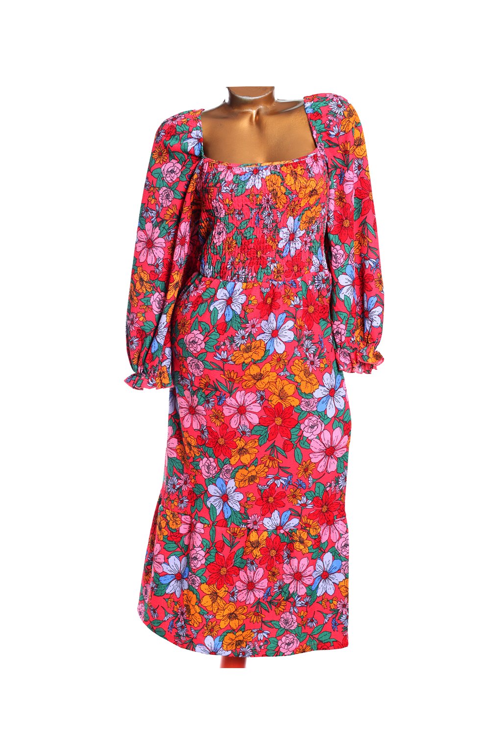 Dámské růžové šaty s barevným květinovým vzorem / Simply Be / XXXL (50) / UK 22 / ANGLIE