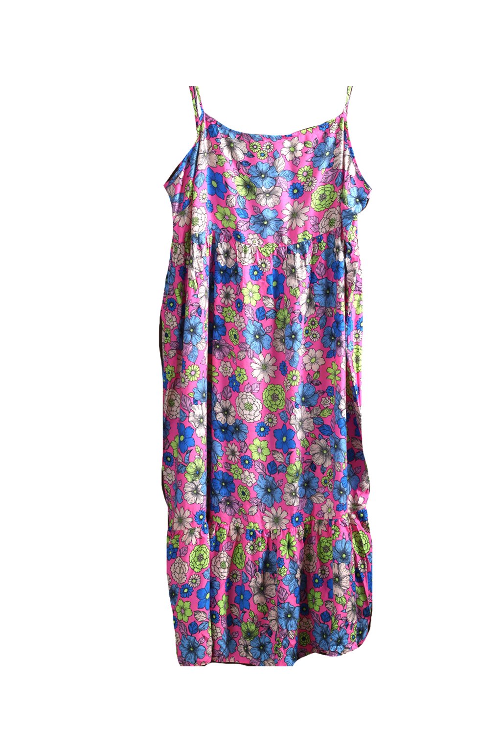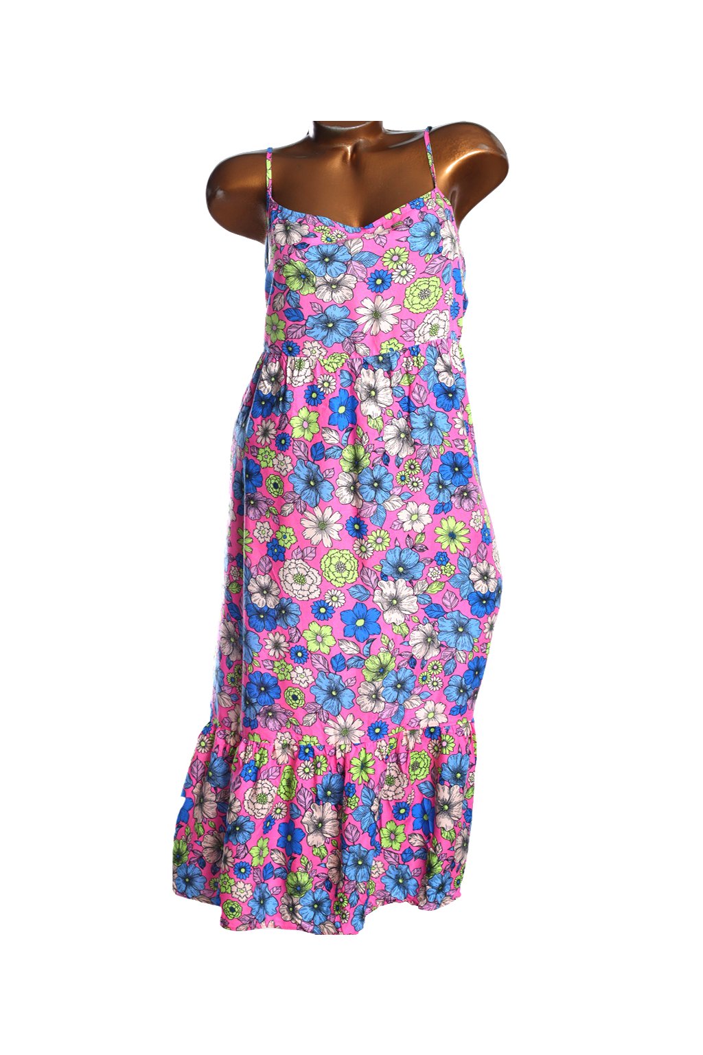 Dámské růžové šaty s modro-zeleno-bílými květy / XXXL (50) / UK 22 / ANGLIE