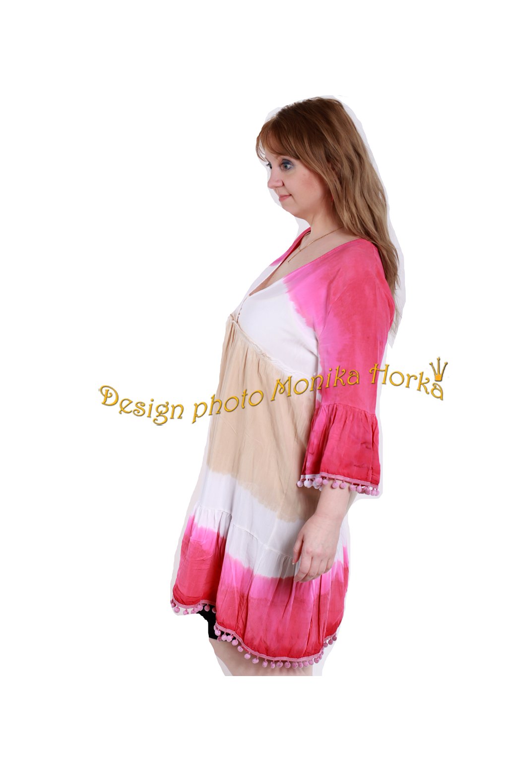 Míry: Délka – 92 cm, prsa - 102-108 cm, pas - 90-94 cm, spodní obvod - volný, rukáv - 44 cm