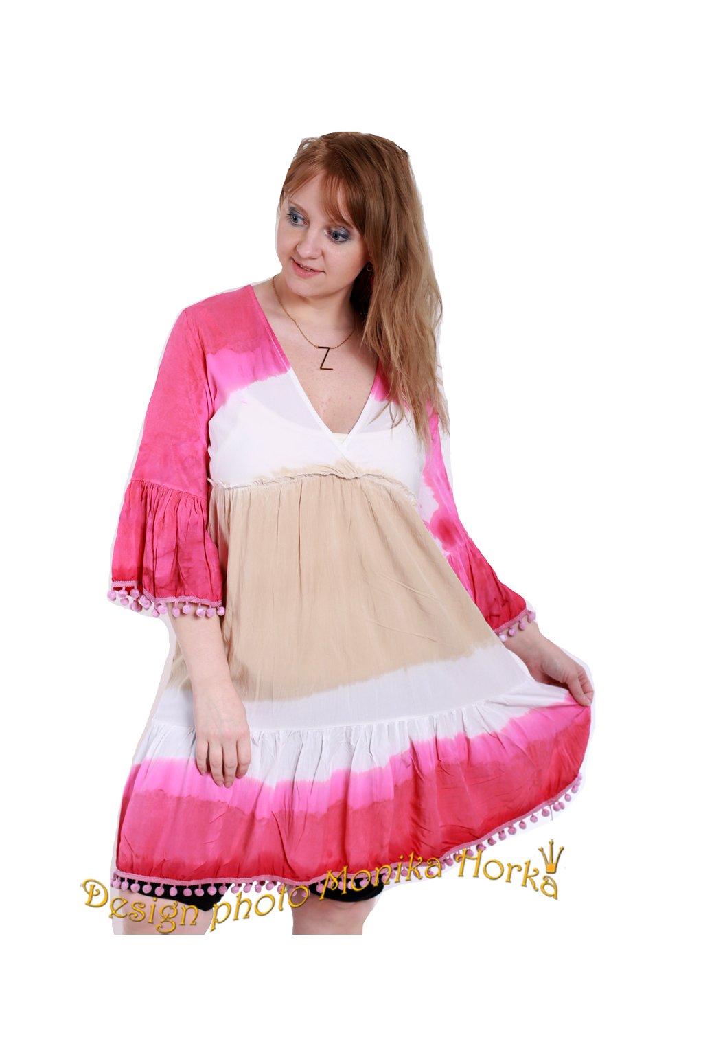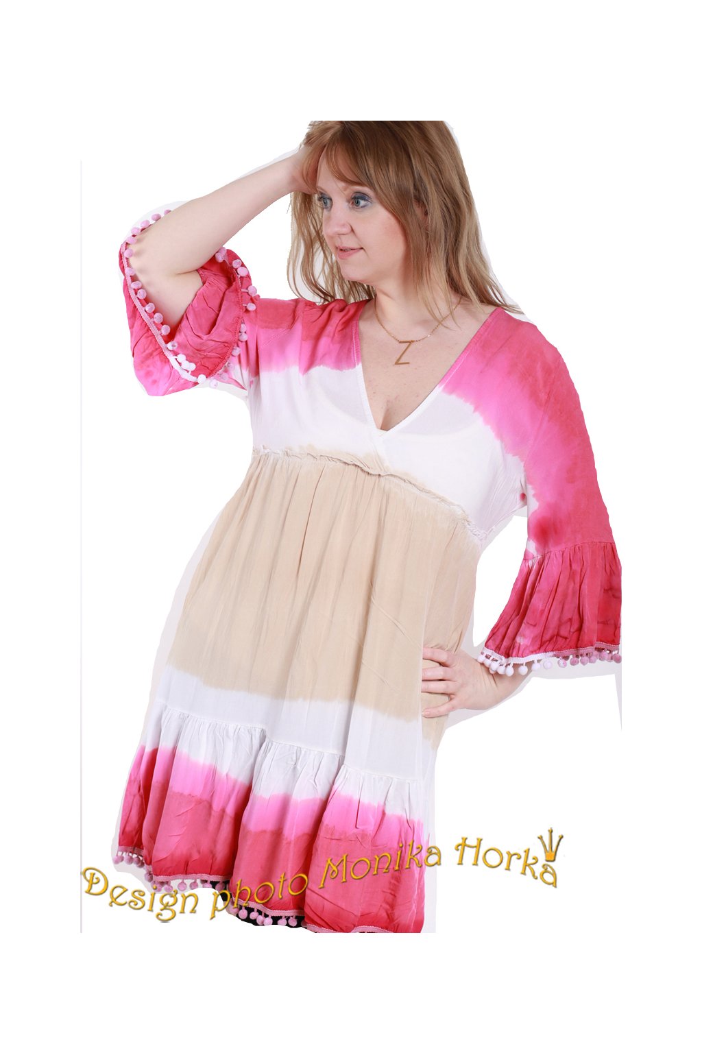 Dámské růžovo-bílo-béžové lehké šaty / MADE IN ITALY / UNI VELIKOST / S/M/L/XL / BUTIK