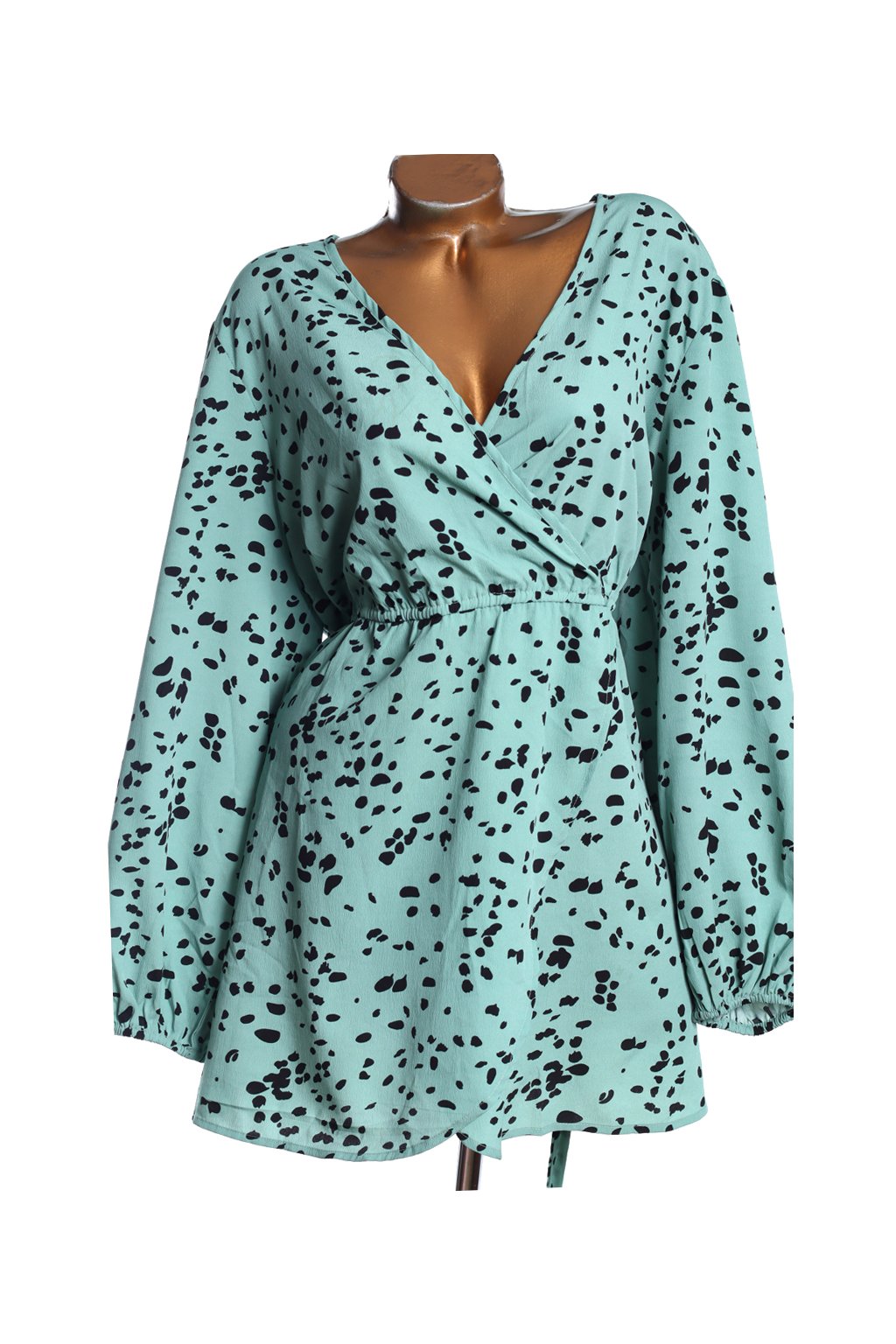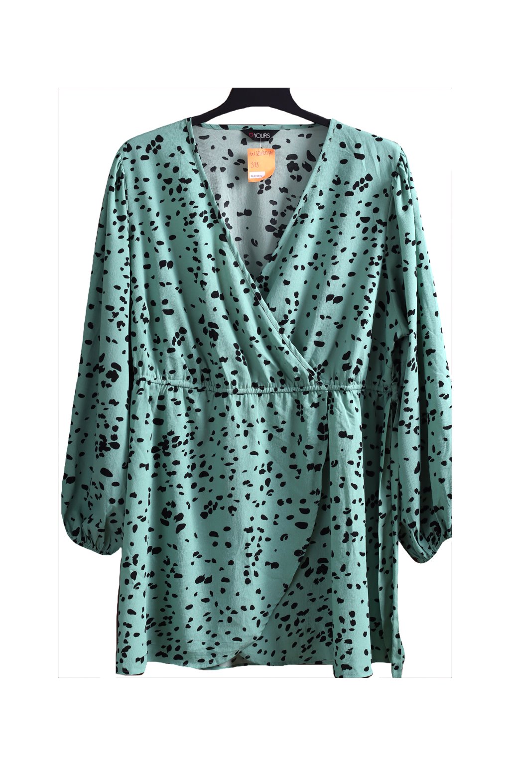 Dámské šalvějově zelené šaty s černými puntíky / YOURS / XXXXL (52) / UK 24 / ANGLIE