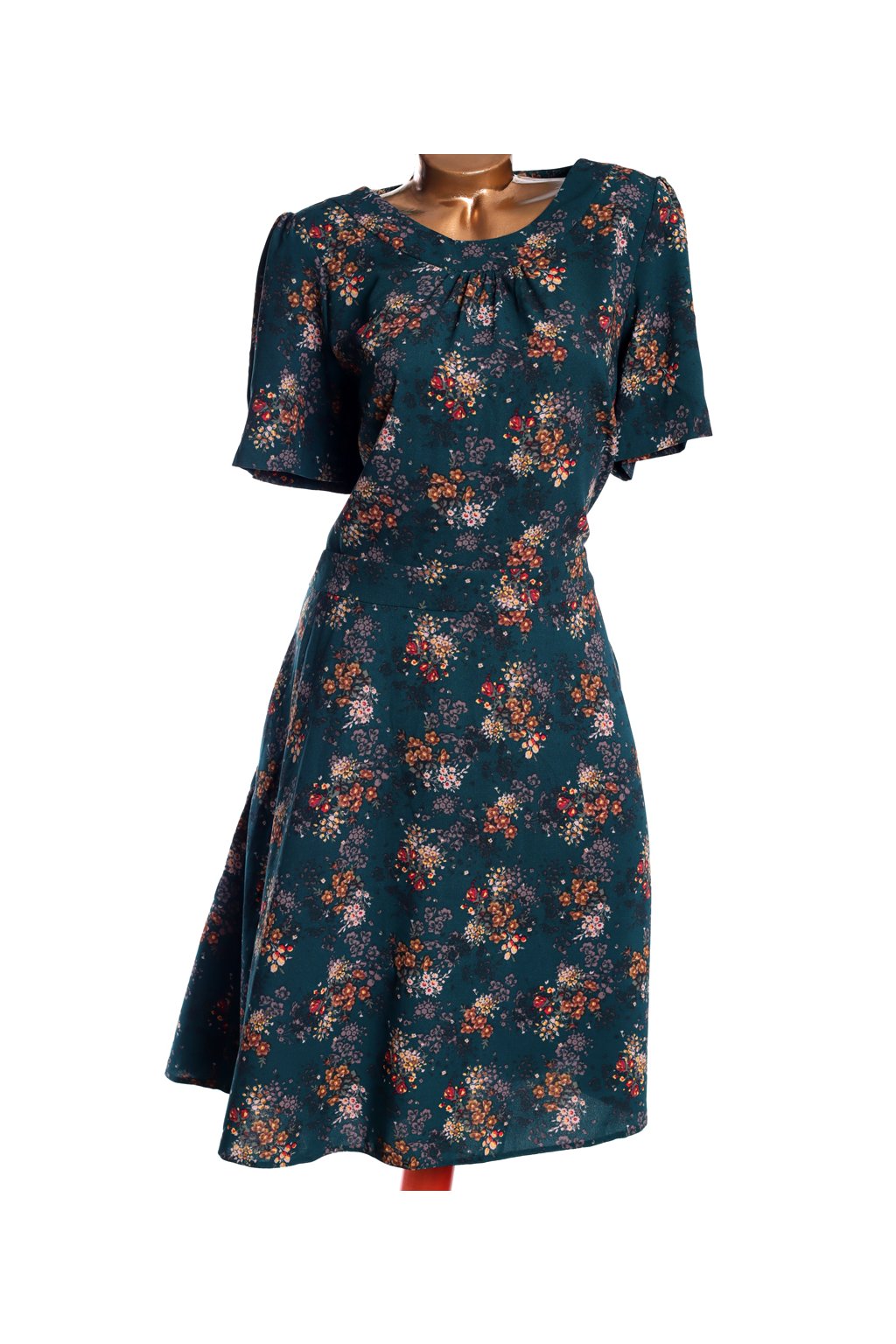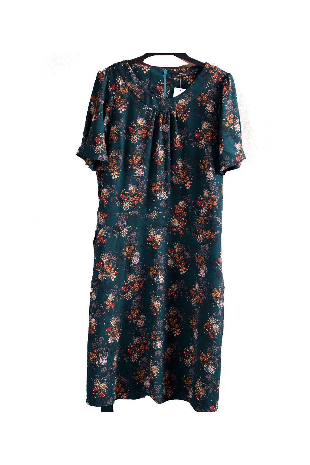 Dámské samragdově zelené šaty s barevnými květy / NEXT / XXL (46) / UK 18 / ANGLIE