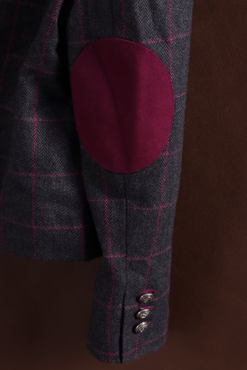 Dámské šedé sako na knoflík s fialovým kostkováním / ATMOSPHERE / XXL (44) / UK 16 / ANGLIE
