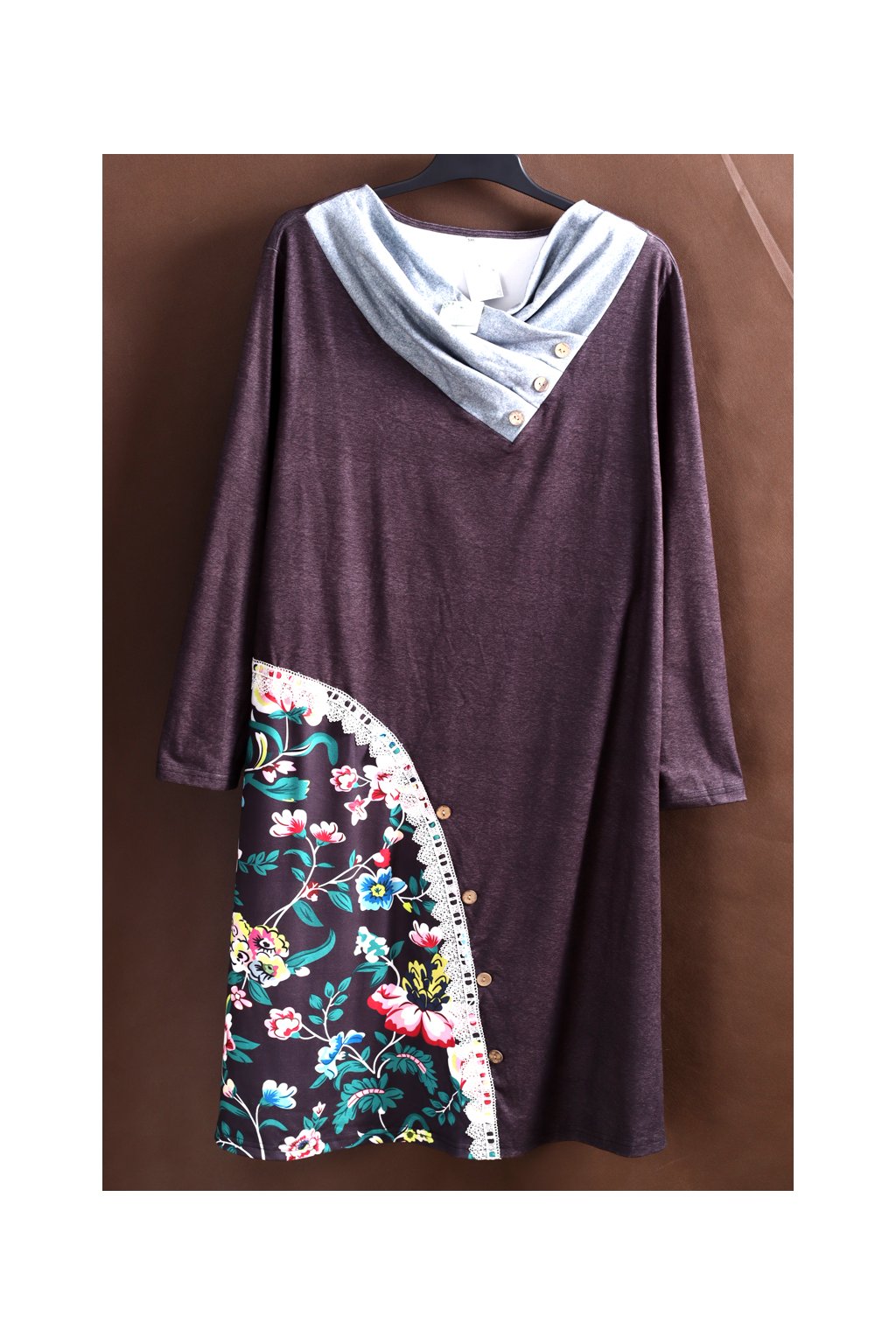 Dámské šedé šaty s barevným květinovým vzorem na spodní části / XXXXL+ (56) / ANGLIE
