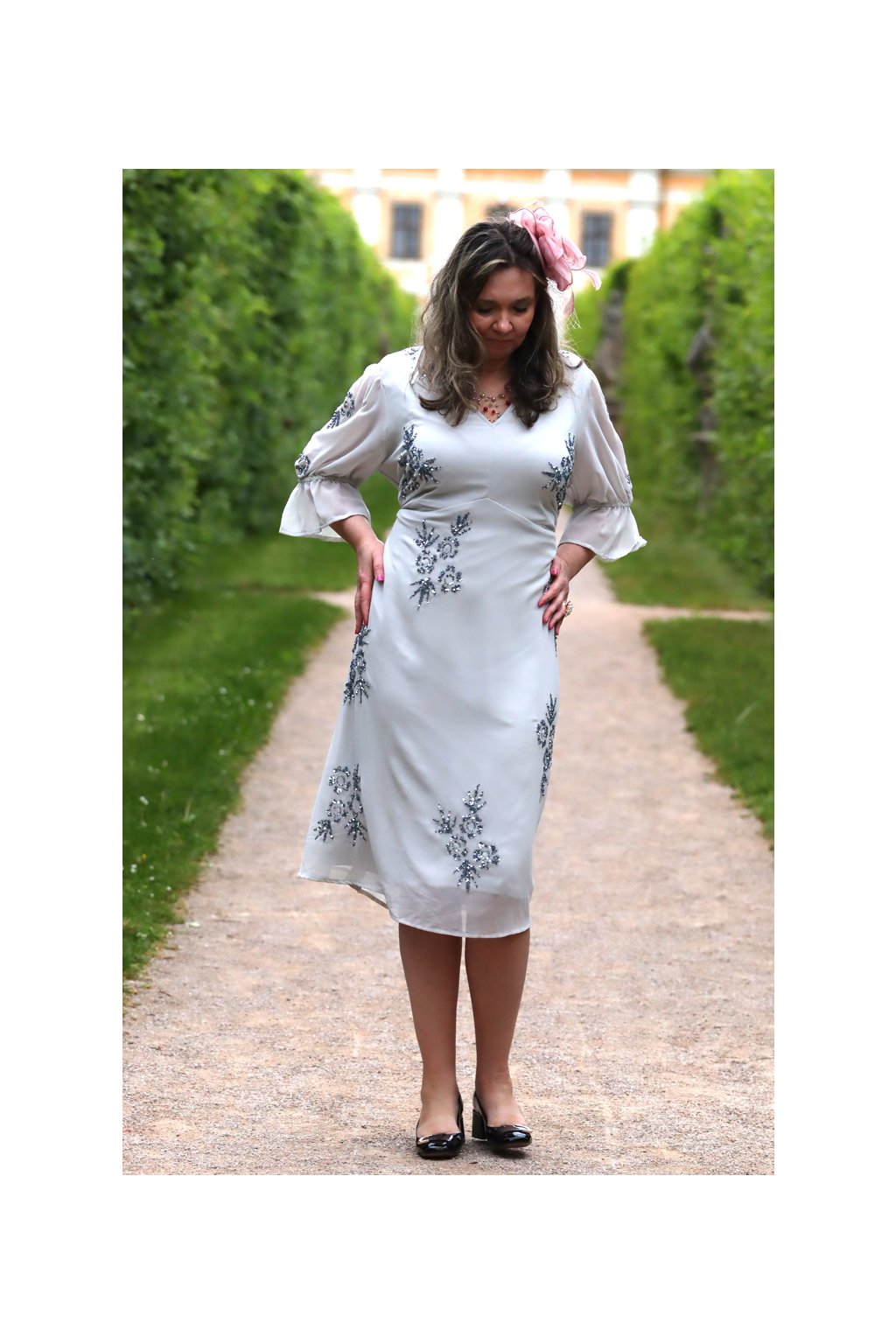 Míry: délka – 132cm, prsa- 138-142cm, pas-134-138cm, spodní lem -volný, rukáv - 40cm