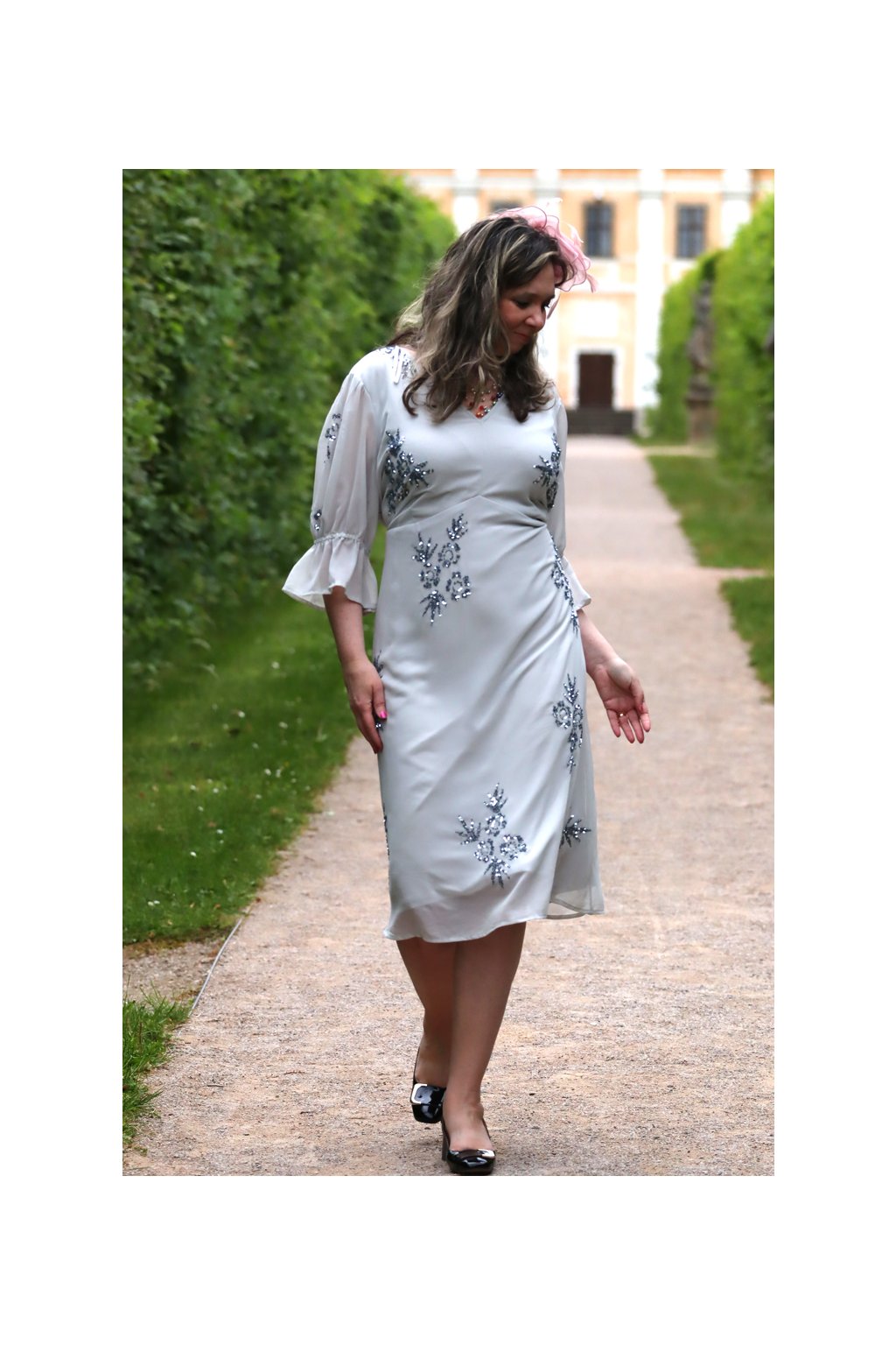 Dámské šedé šaty s flitry / JOANNA HOPE / XXXXL (54) / UK 26 / ANGLIE