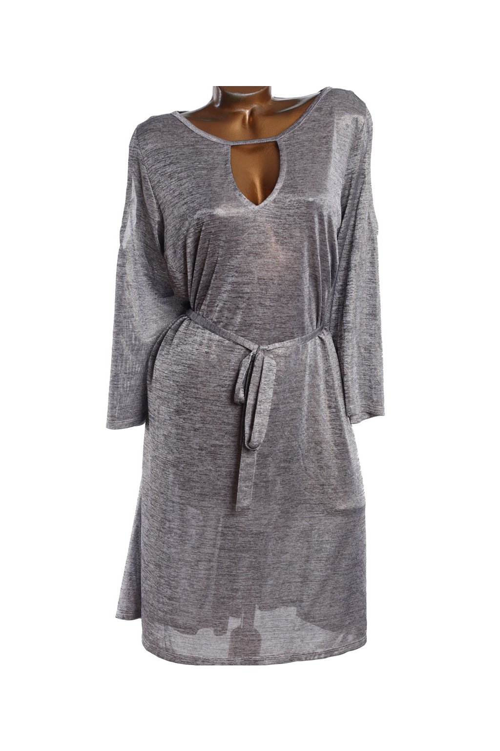 Dámské šedé šaty s páskem / ANNASCHOLZ / XXXXL (52) / UK 24 / ANGLIE