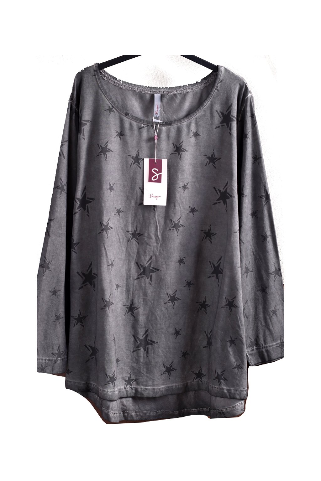 Dámské šedé triko s hvězdičkami / SHEEGO / XXXXL+ (58/60) / UK 30/32 / ANGLIE