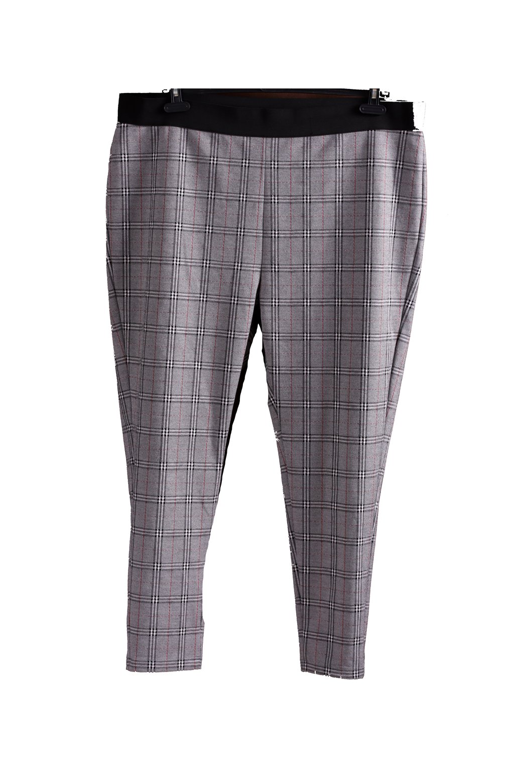 Dámské šedo-bílo-černo-červené kostkované kalhoty - pas na gumu / Marks&Spencer - XXXL (52) / UK 24 / ANGLIE