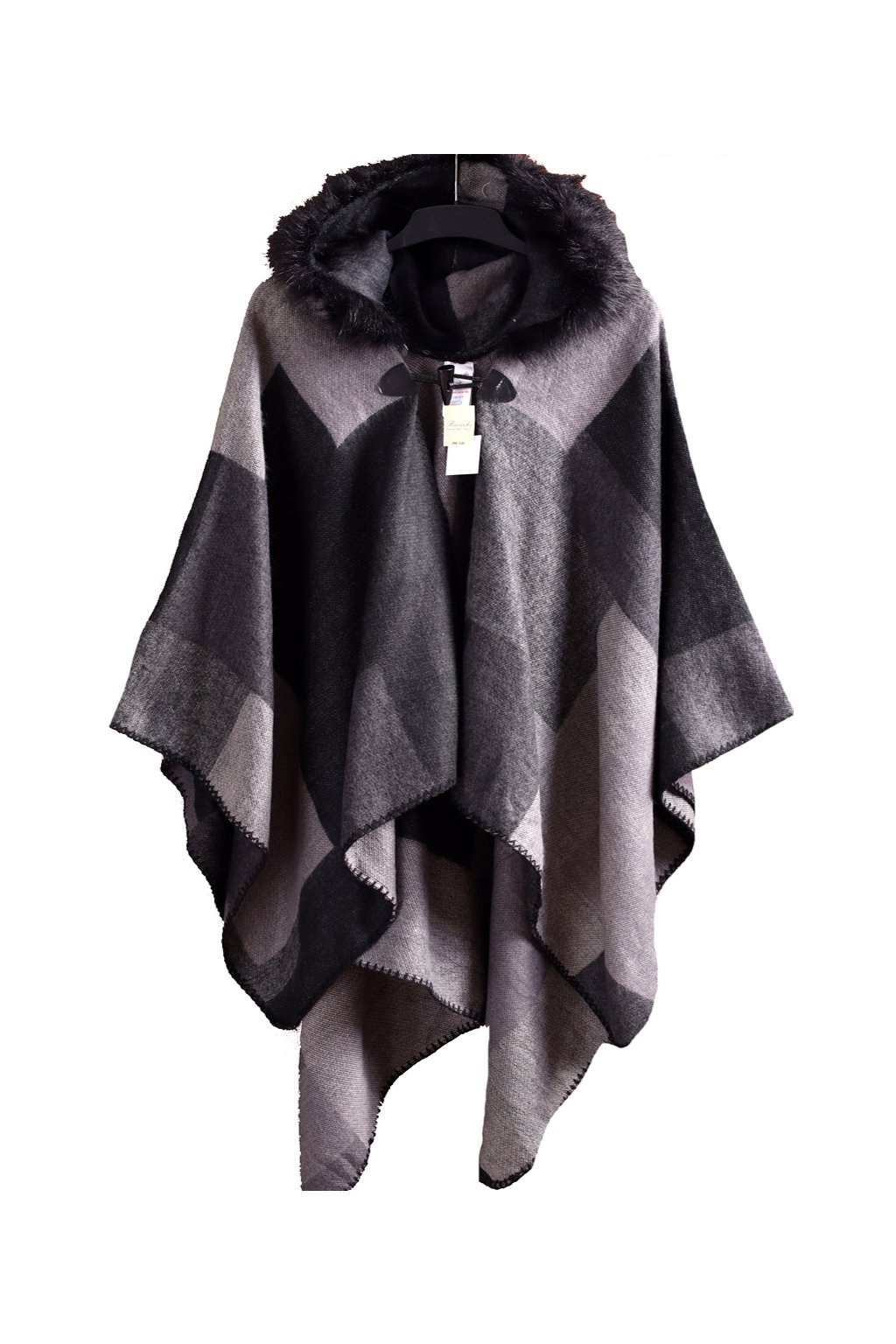 Dámské šedo-černé pončo s kožíškem / PEACOCKS / onesize