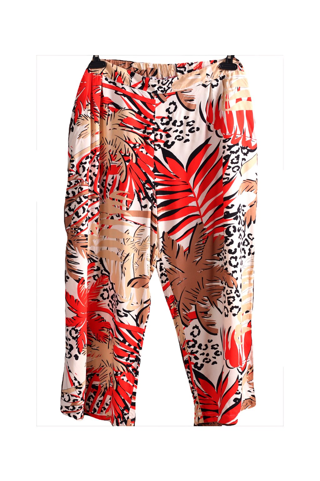 Dámské široké bílo-hnědo-černo-červené vzorované kalhoty / PAPAYA / XXXL (50) / UK 22 / ANGLIE