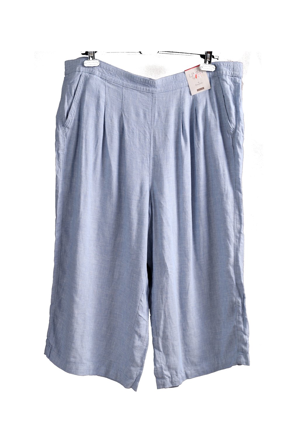 Dámské světle modré lněné 3/4 kalhoty / BONMARCH0 / XXXL (50)/ UK 22 / ANGLIE
