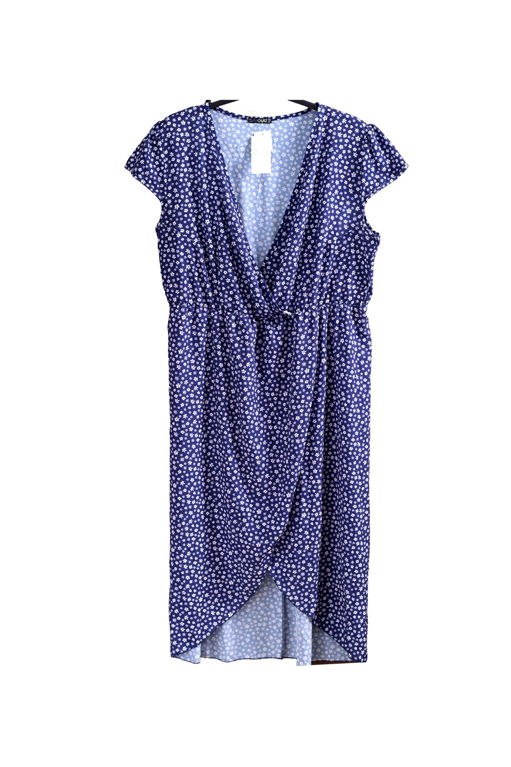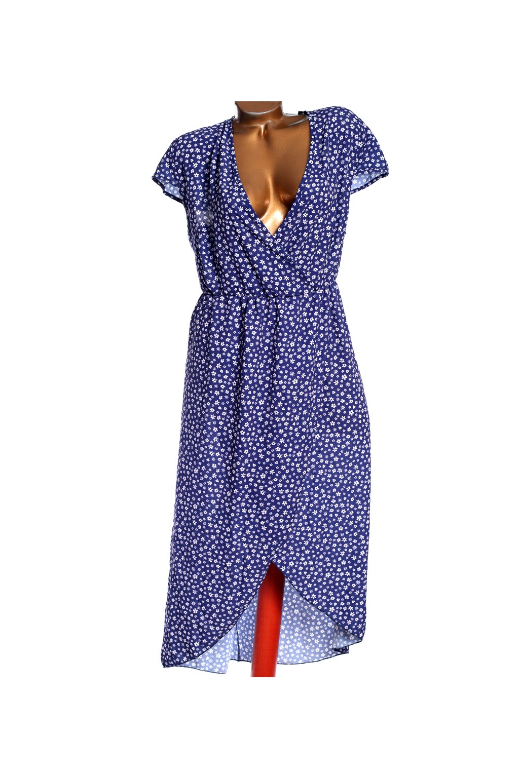 Dámské tmavě modré lehké šaty s bílými kvítky / QUIZ / XXXL (50) / UK 22 / ANGLIE