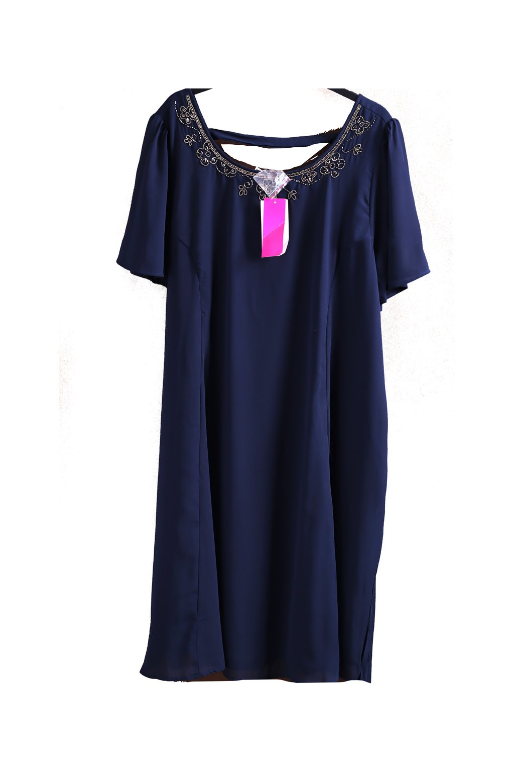 Dámské tmavě modré šaty s kamínkovými květy u dekoltu PC - 1200,- / BUMP IT UP / XXXXL (52) / UK 24 / ANGLIE