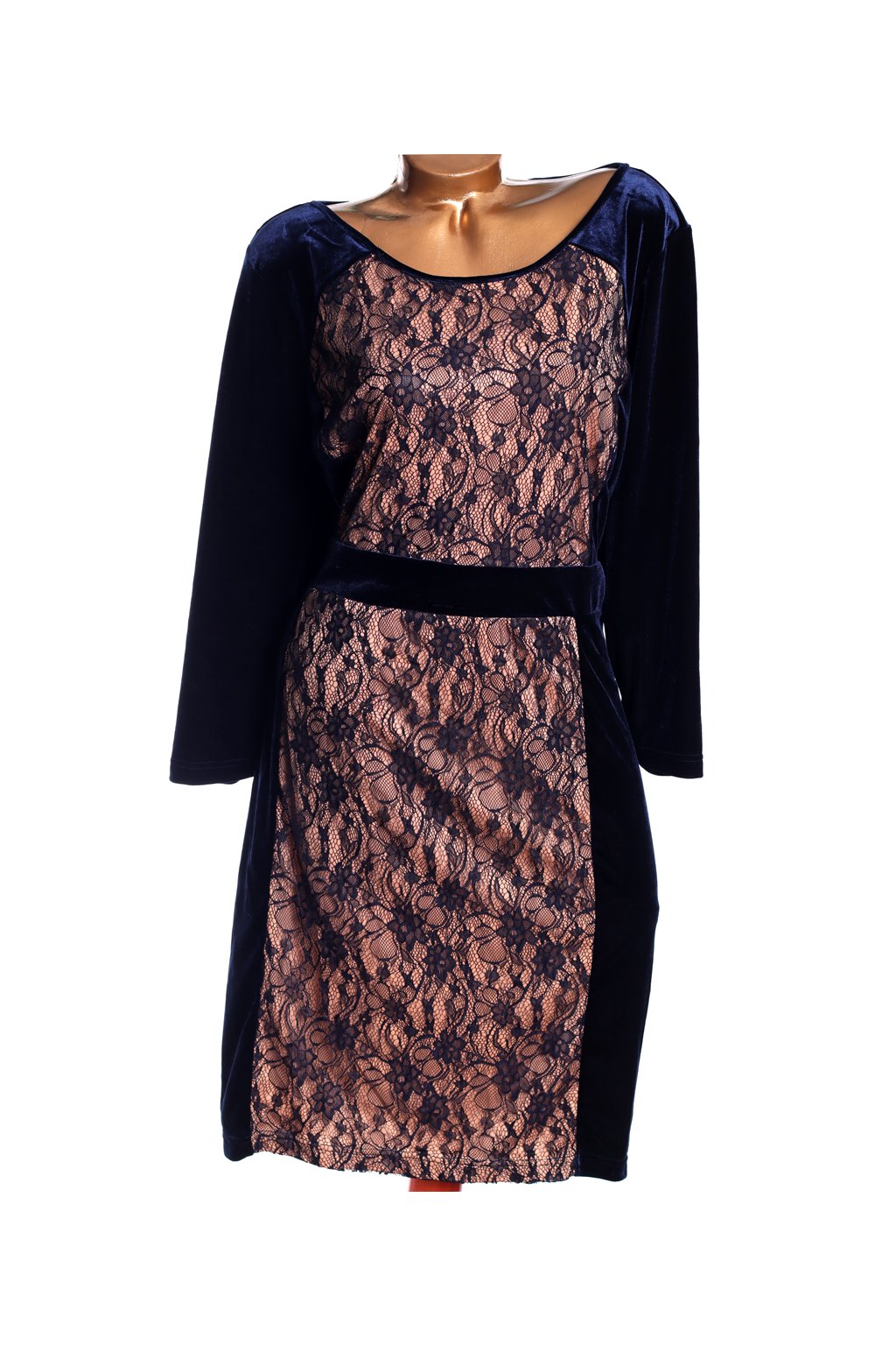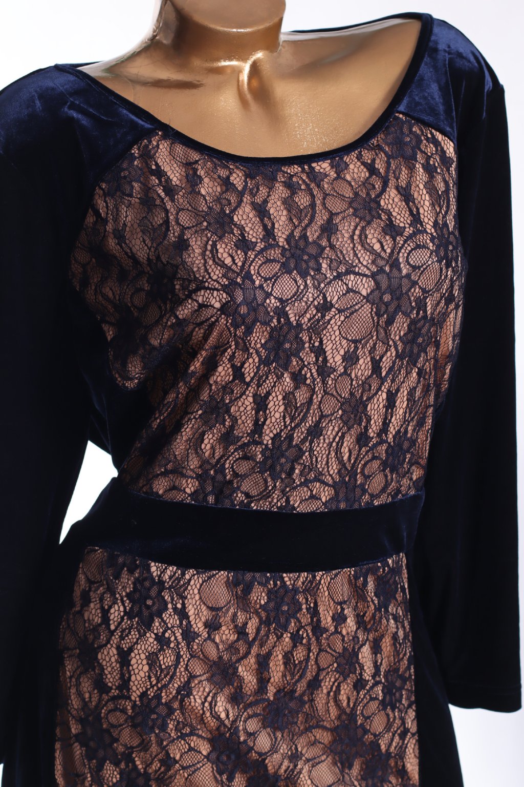 Dámské tmavě modré semišové šaty s krajkou / TRINNY SUSANNAH / XXXL (50) / UK 22 / ANGLIE